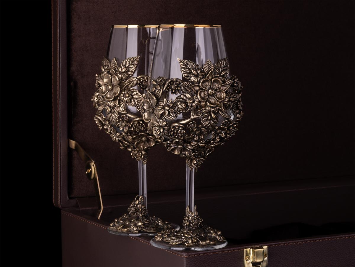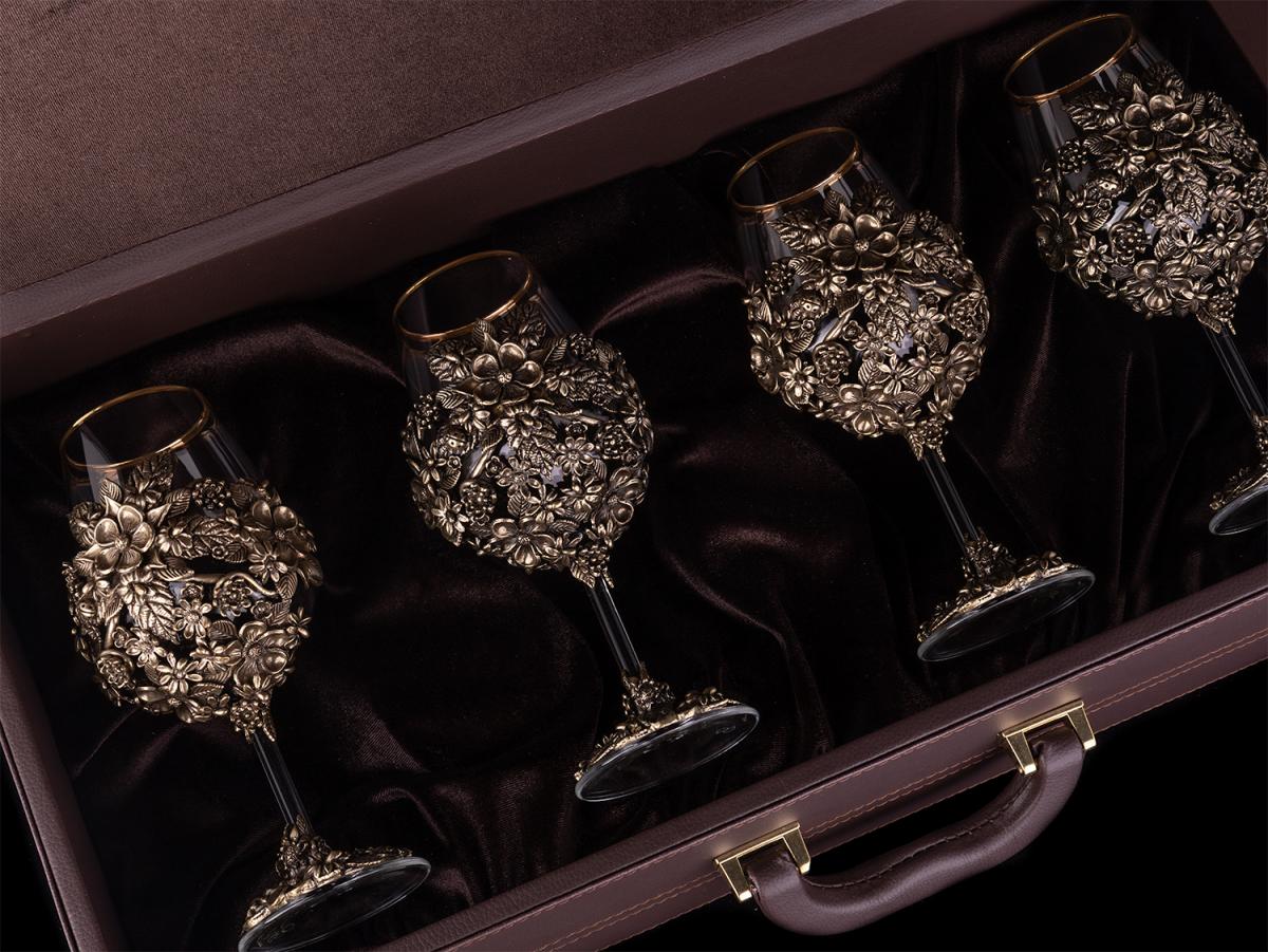 Набор бокалов для вина 4 шт в кейсе Цветочная фантазия (Серия классик)