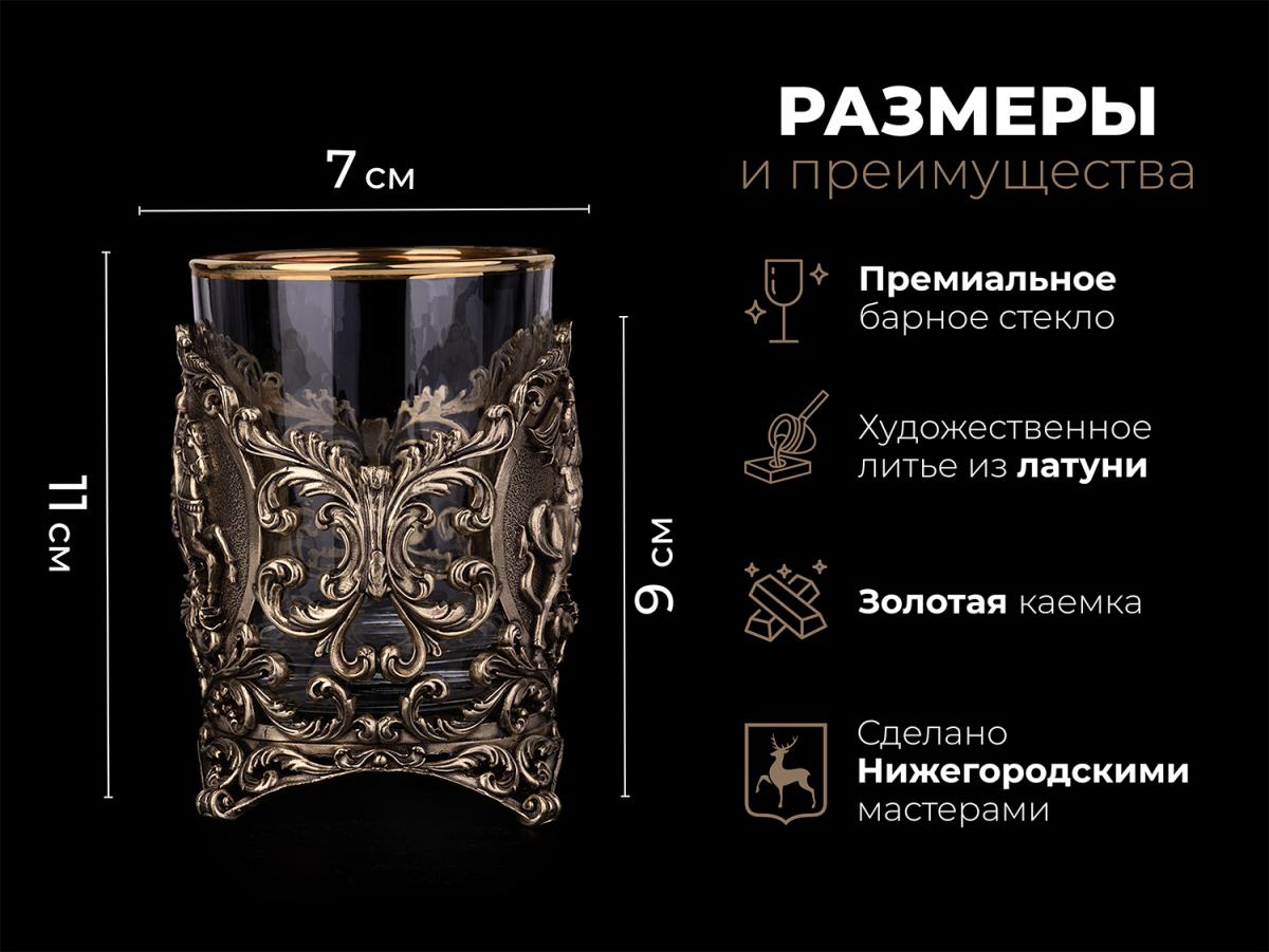 Бокал для виски выполнен в виде подстаканника из латуни, а в него вставлен стеклянный бокал, который легко вынимается, чтобы его можно было помыть отдельно.