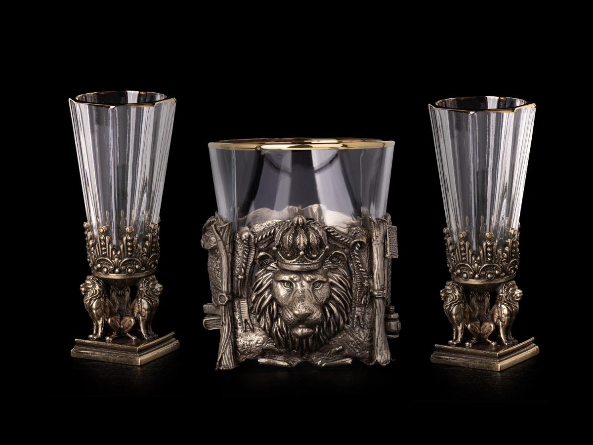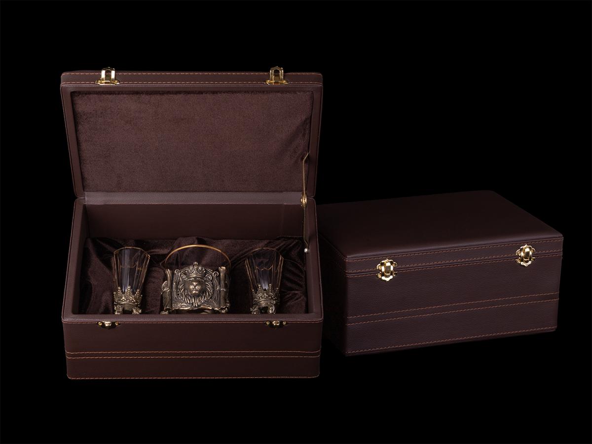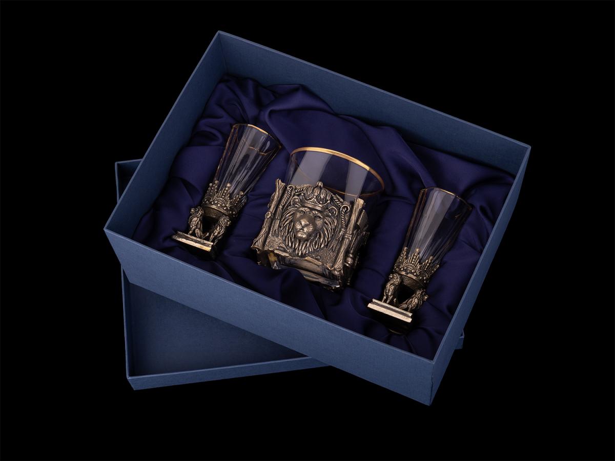 Подарочный набор Мудрый лев (2 лафитника, бокал для виски)
