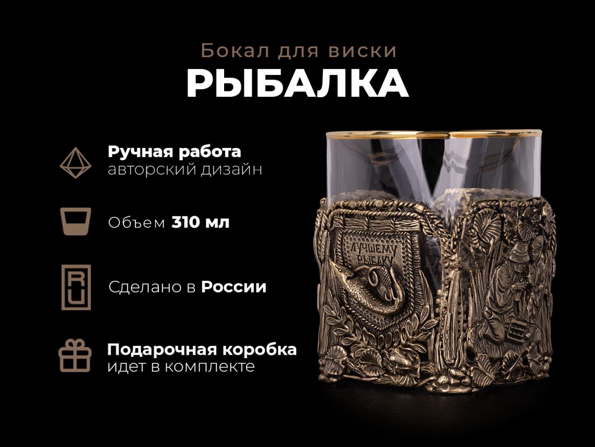 Стакан для виски Рыбалка (Латунь, стекло)