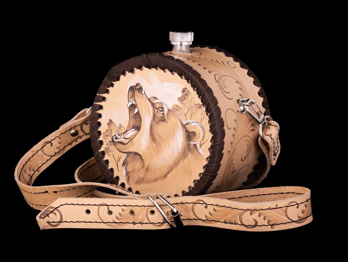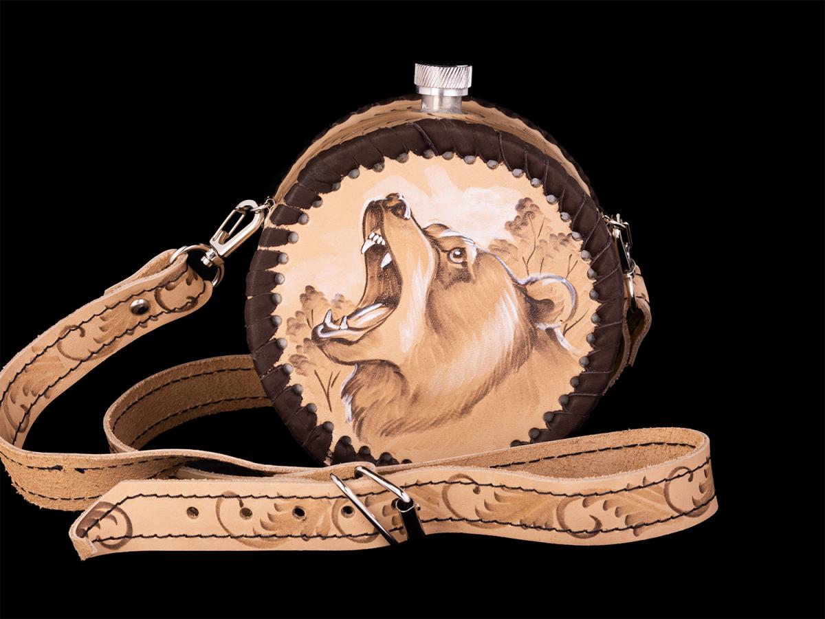 Фляжка круглая Медведь №2 (бежевый)