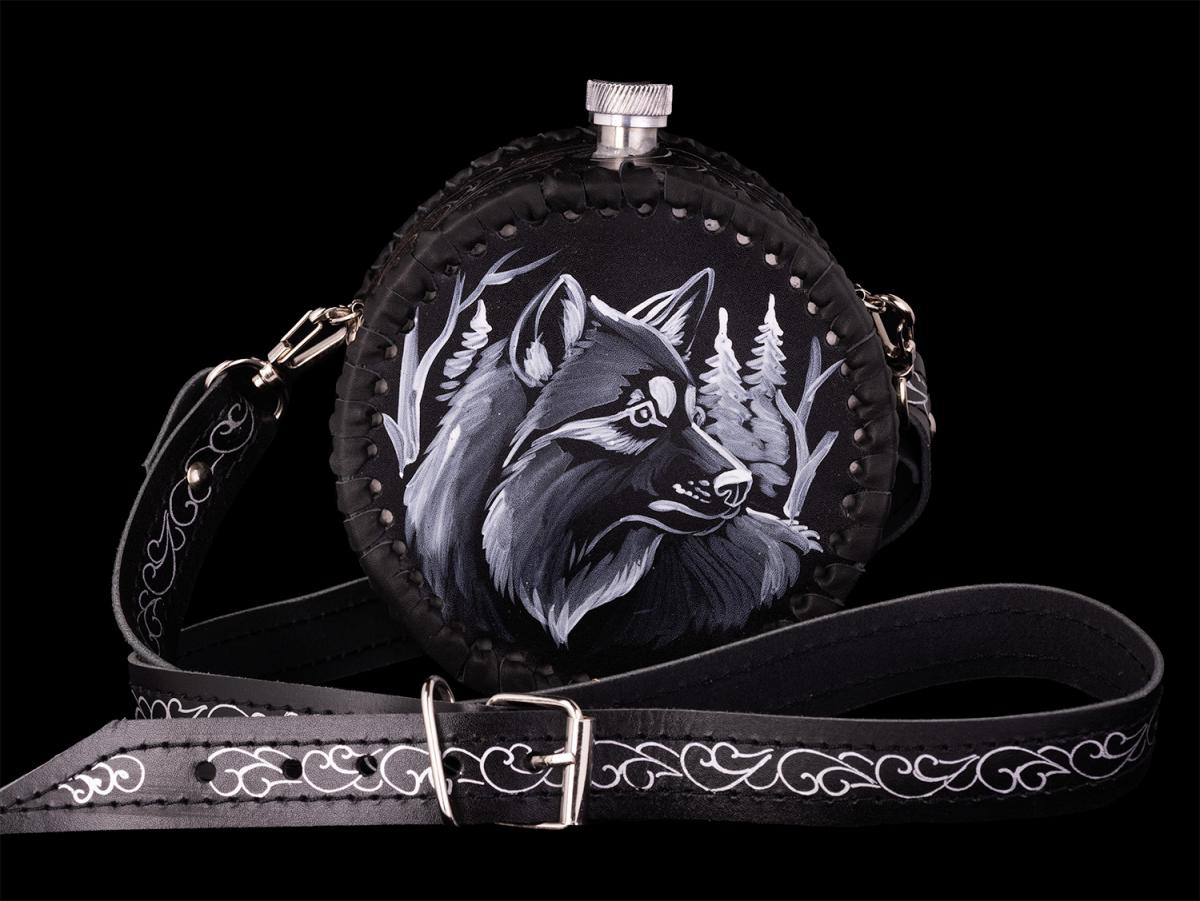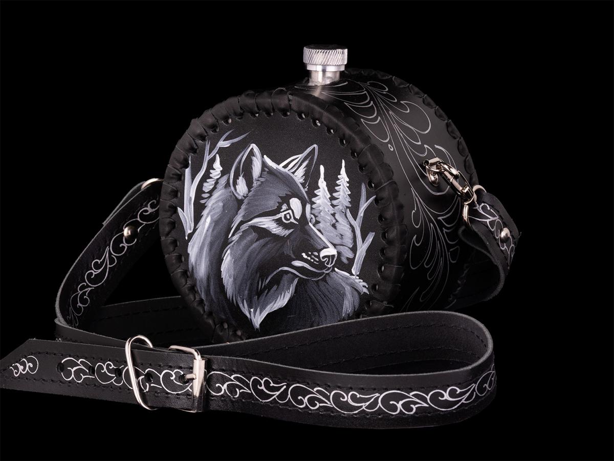 Фляжка круглая Волк №2 (черный)