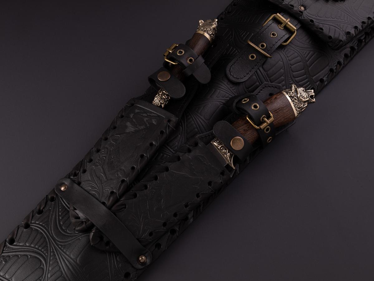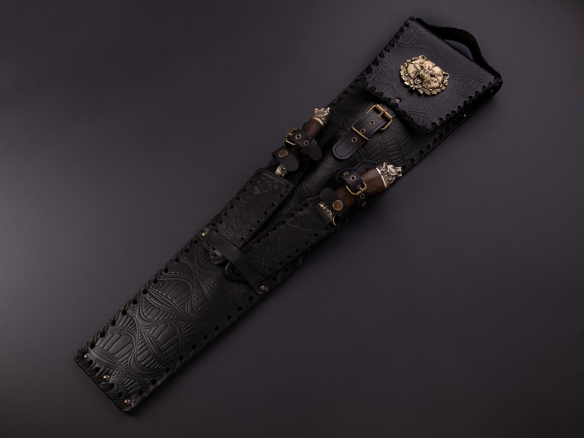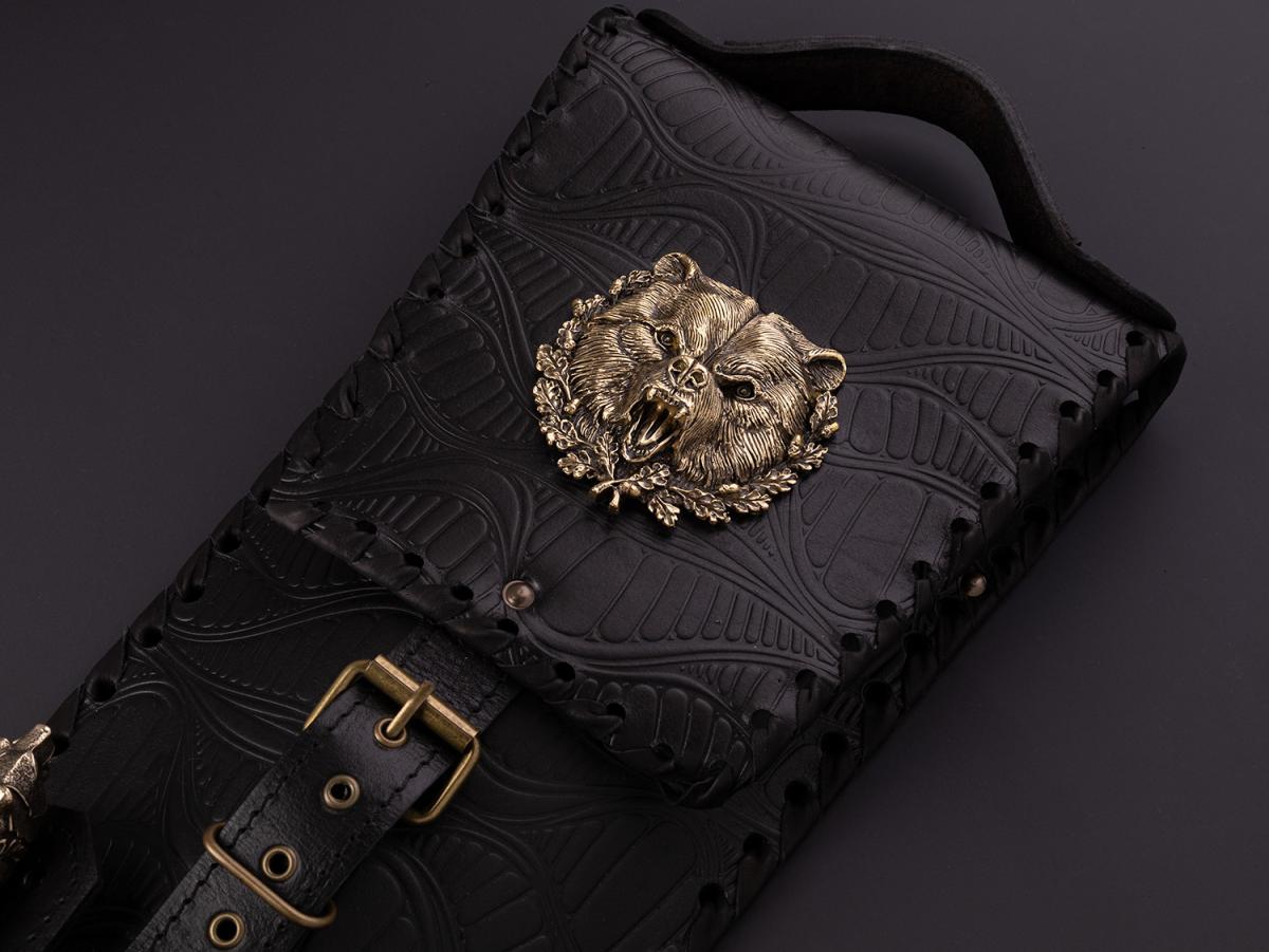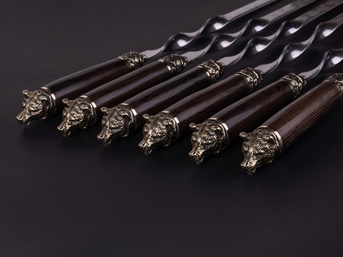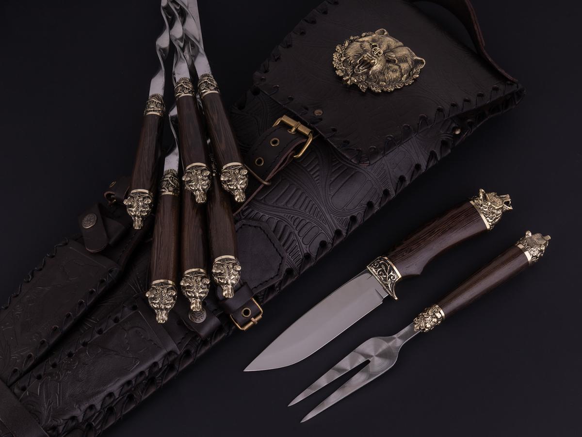 Набор шампуров Медведи в чехле из натуральной кожи с ножом и вилкой
