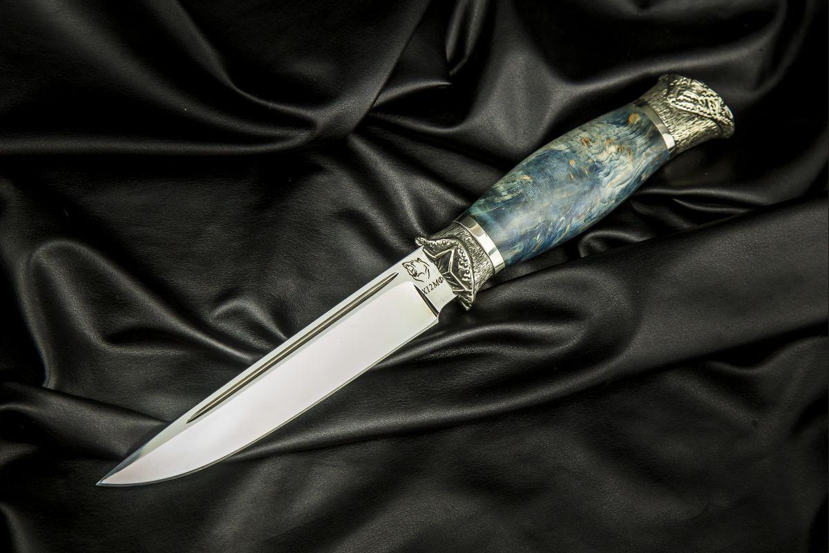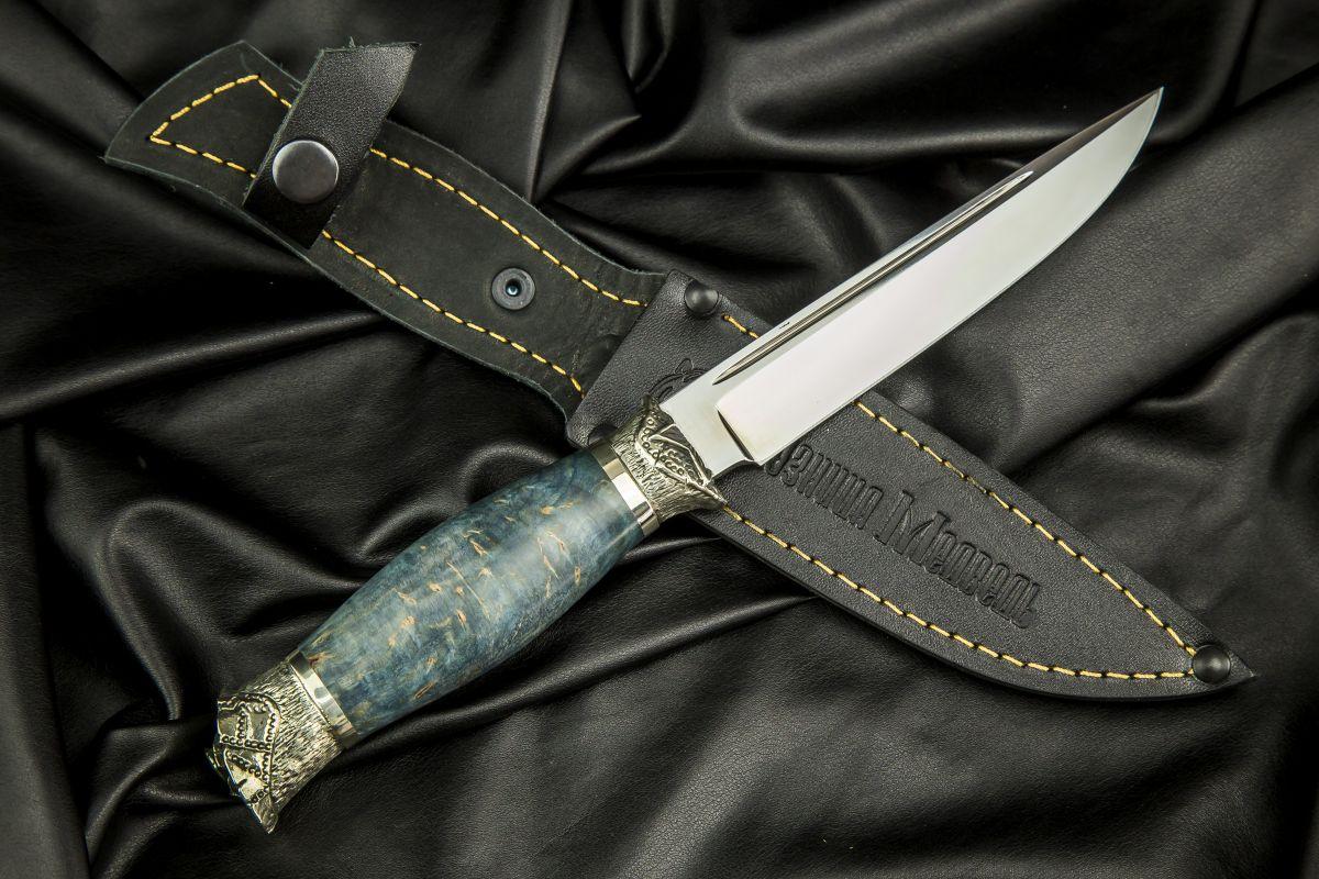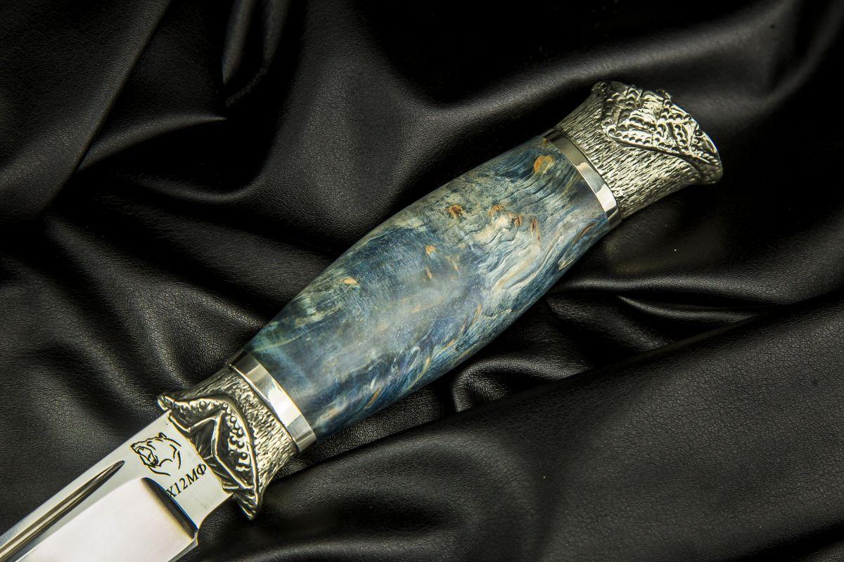 Авторская Финка НКВД 4 мм (х12мф, стабилизированная карельская береза, авторское литьё мельхиор)