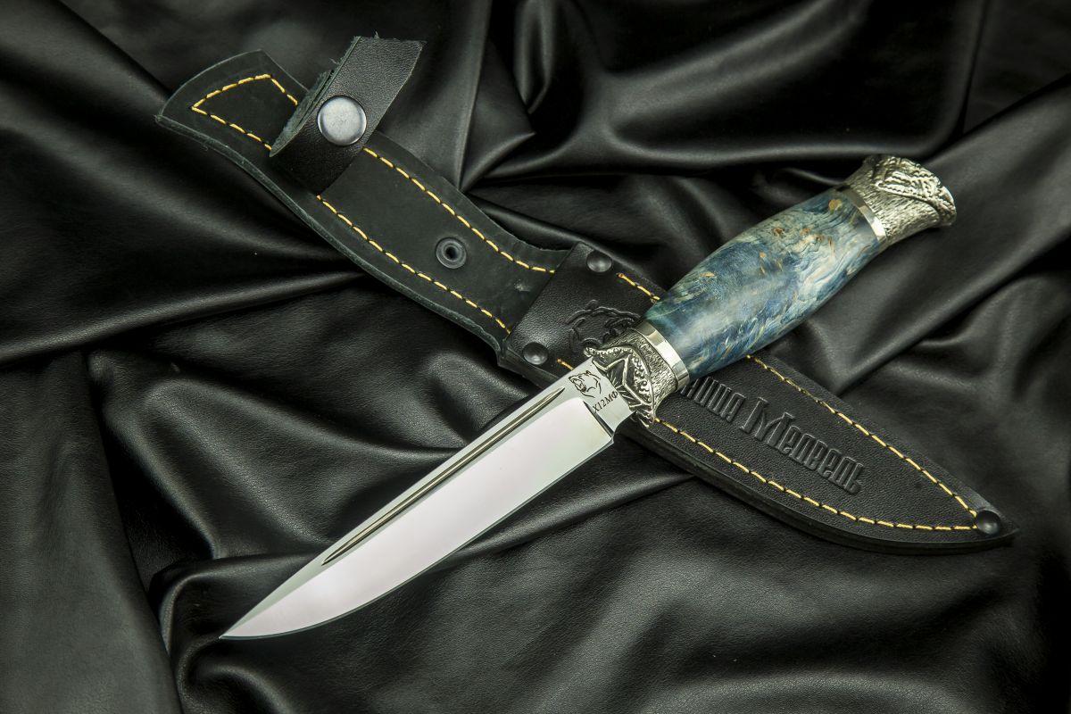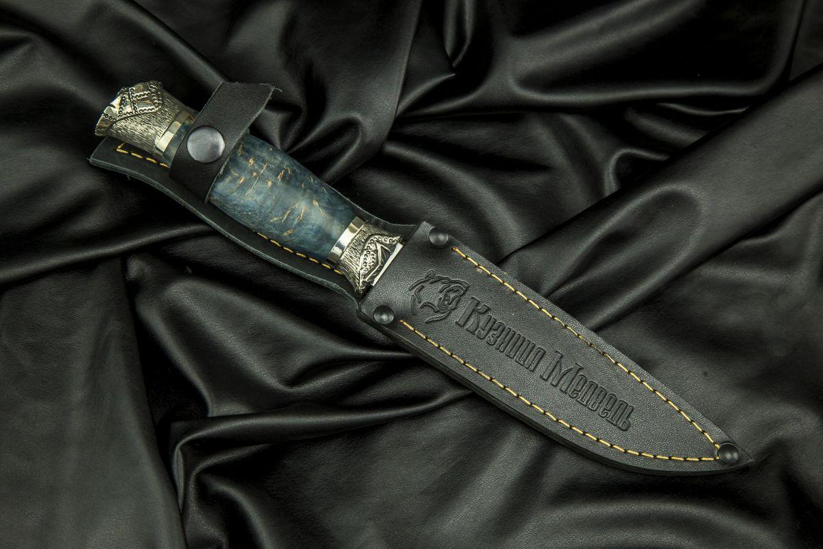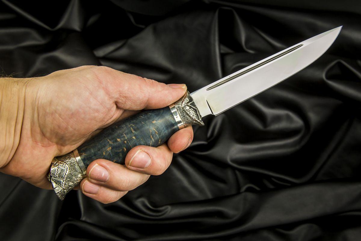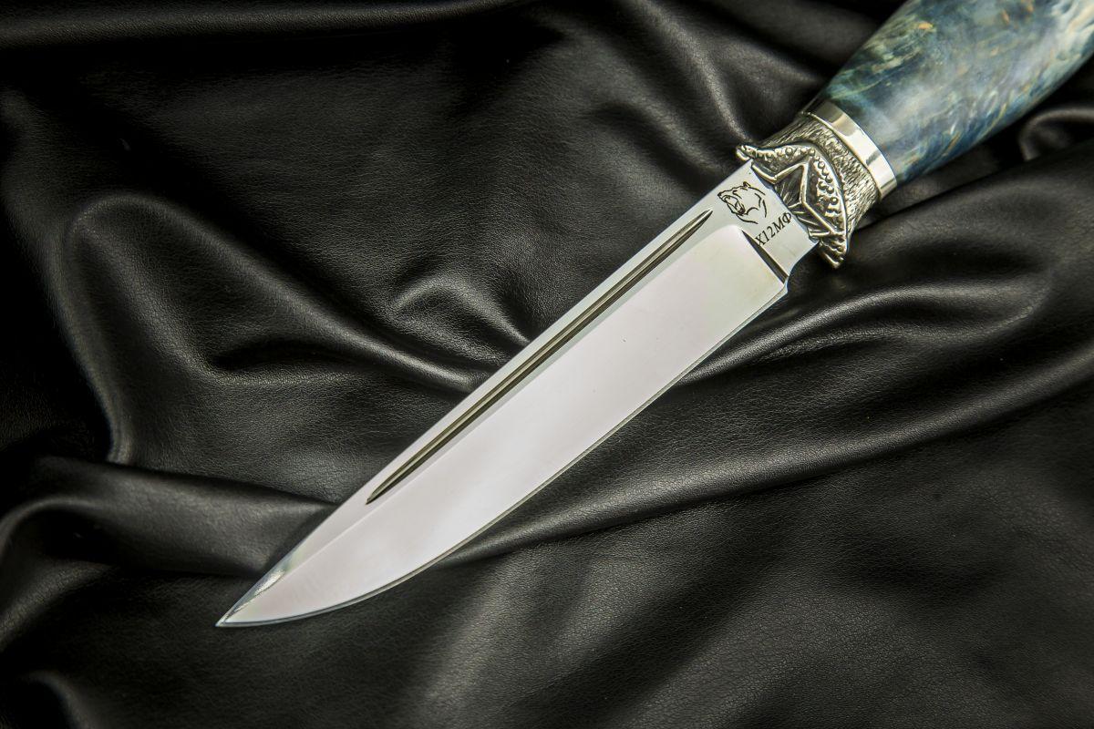 Авторская Финка НКВД 4 мм (х12мф, стабилизированная карельская береза, авторское литьё мельхиор)