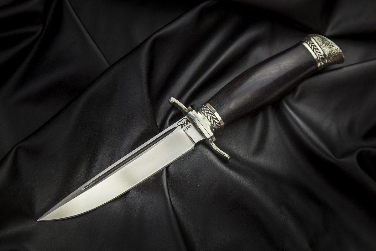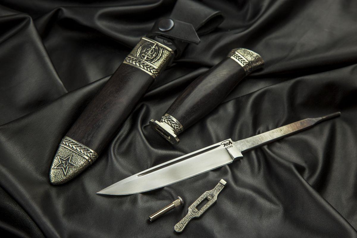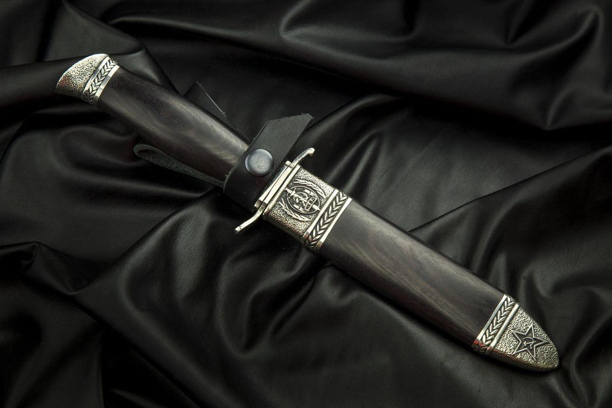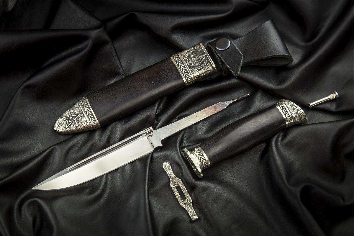 Финка НКВД разборная (М390, стабилизированный черный граб, литье мельхиор, деревянные ножны)