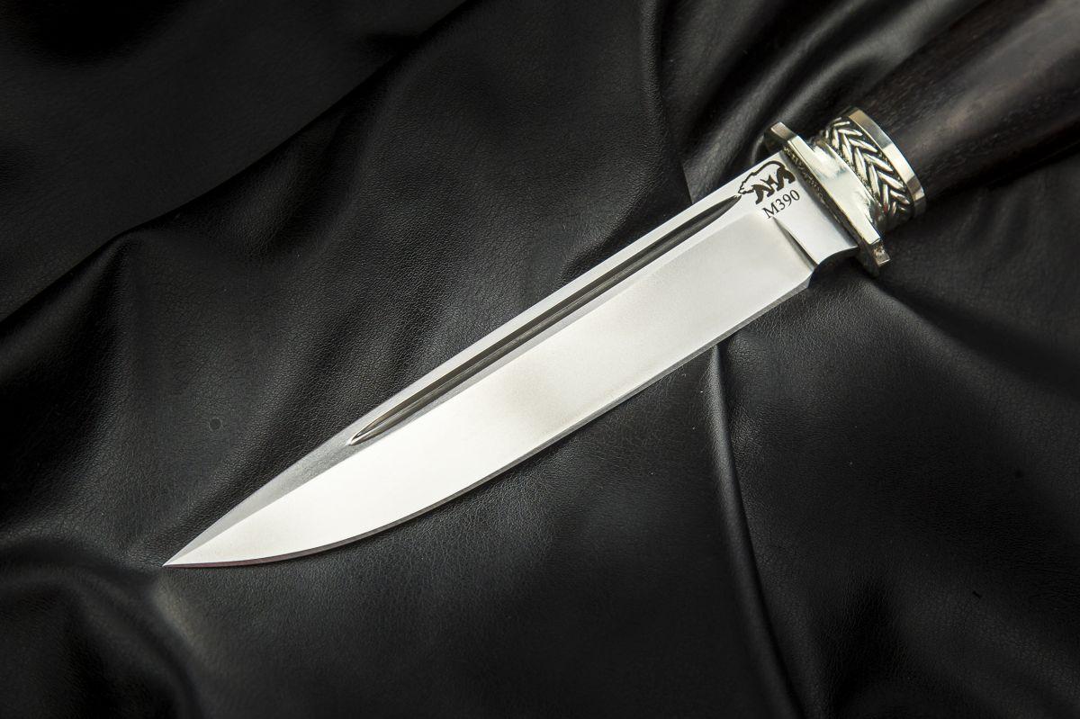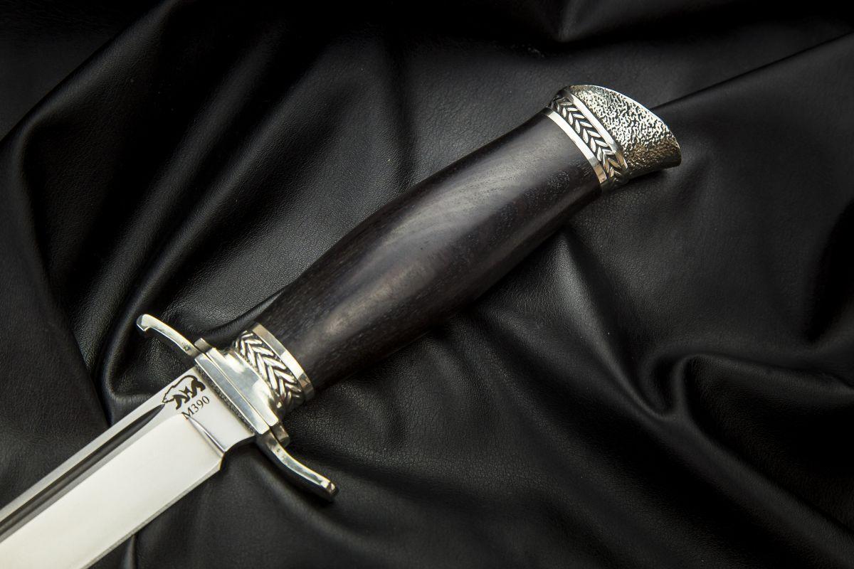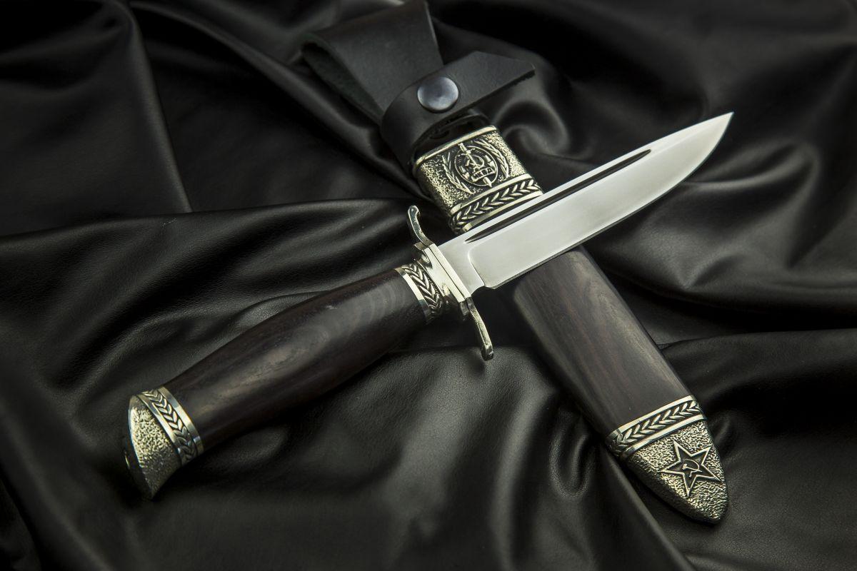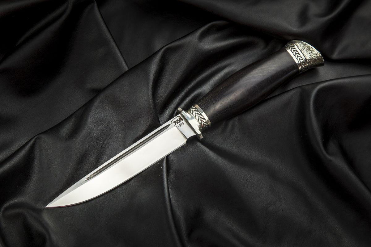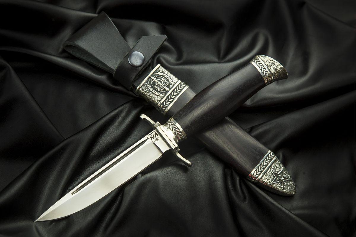Финка НКВД разборная (М390, стабилизированный черный граб, литье мельхиор, деревянные ножны)