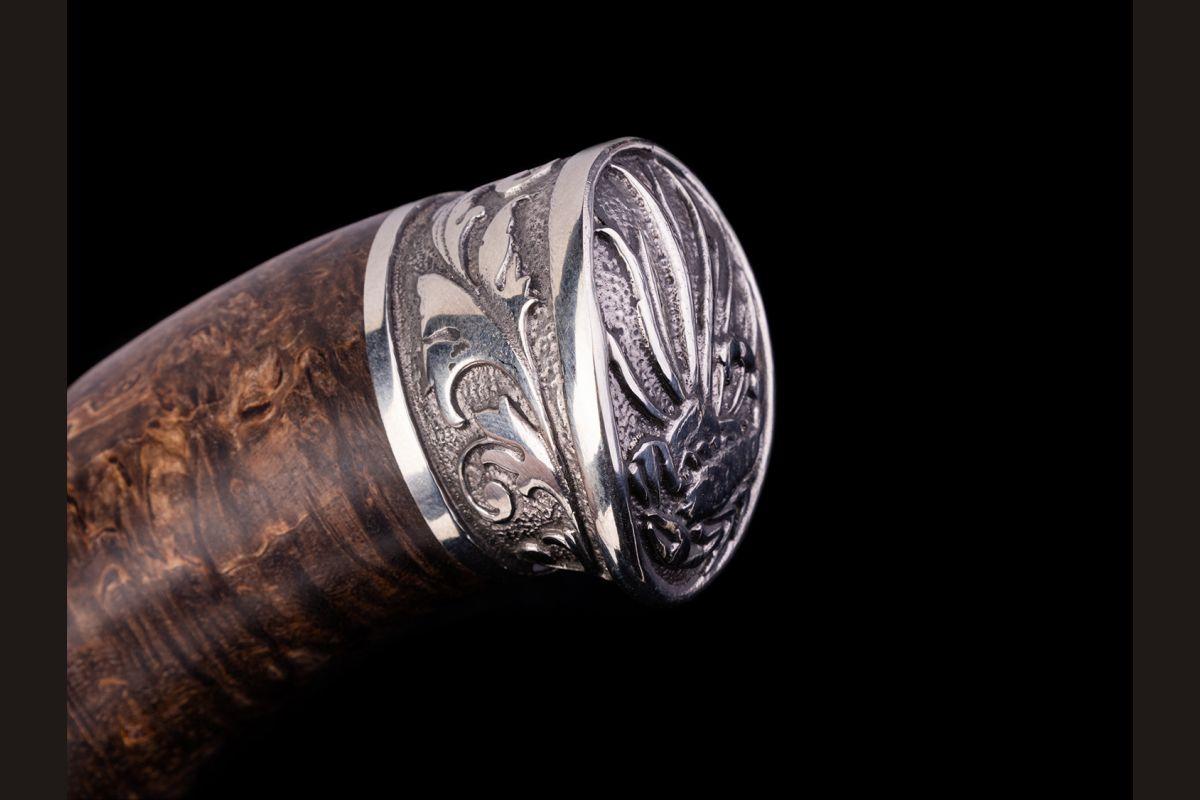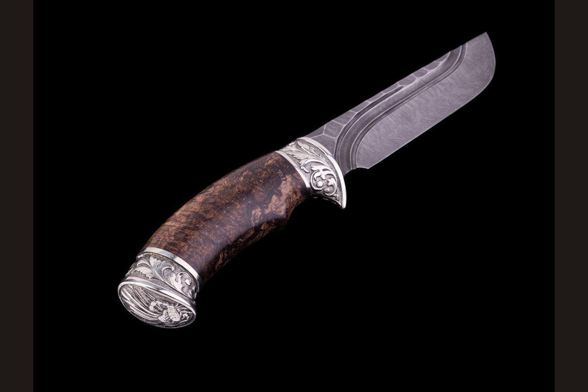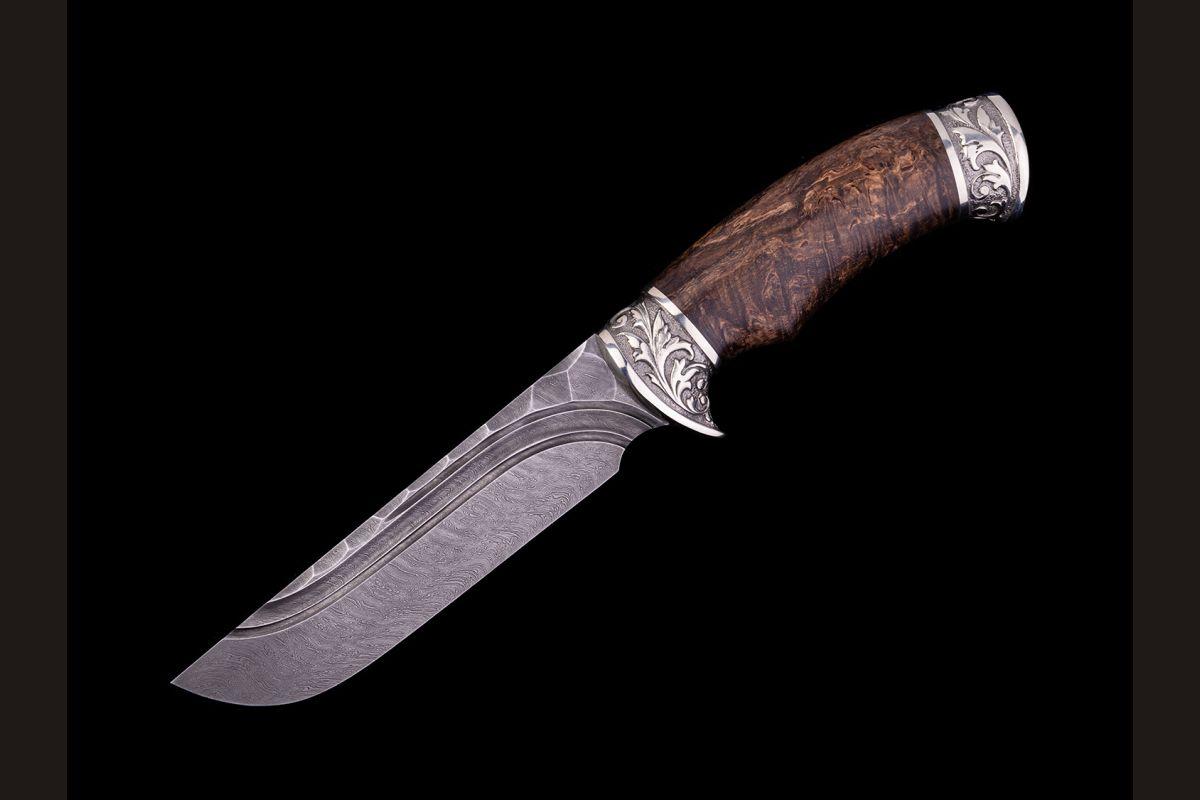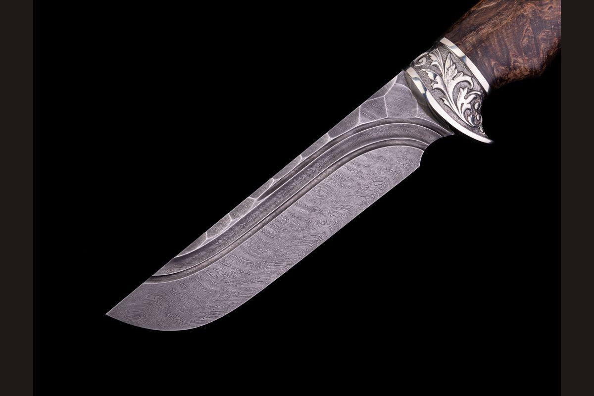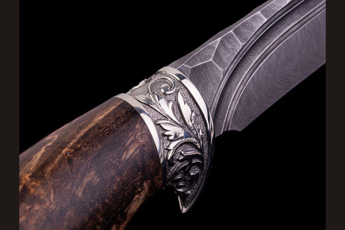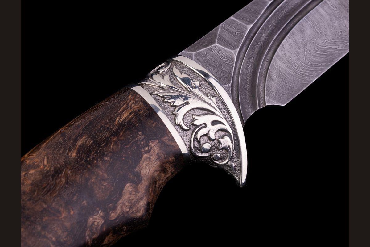 Нож Легионер (дамаск, долы - камень, стабилизированная карельская берёза, литьё мельхиор)