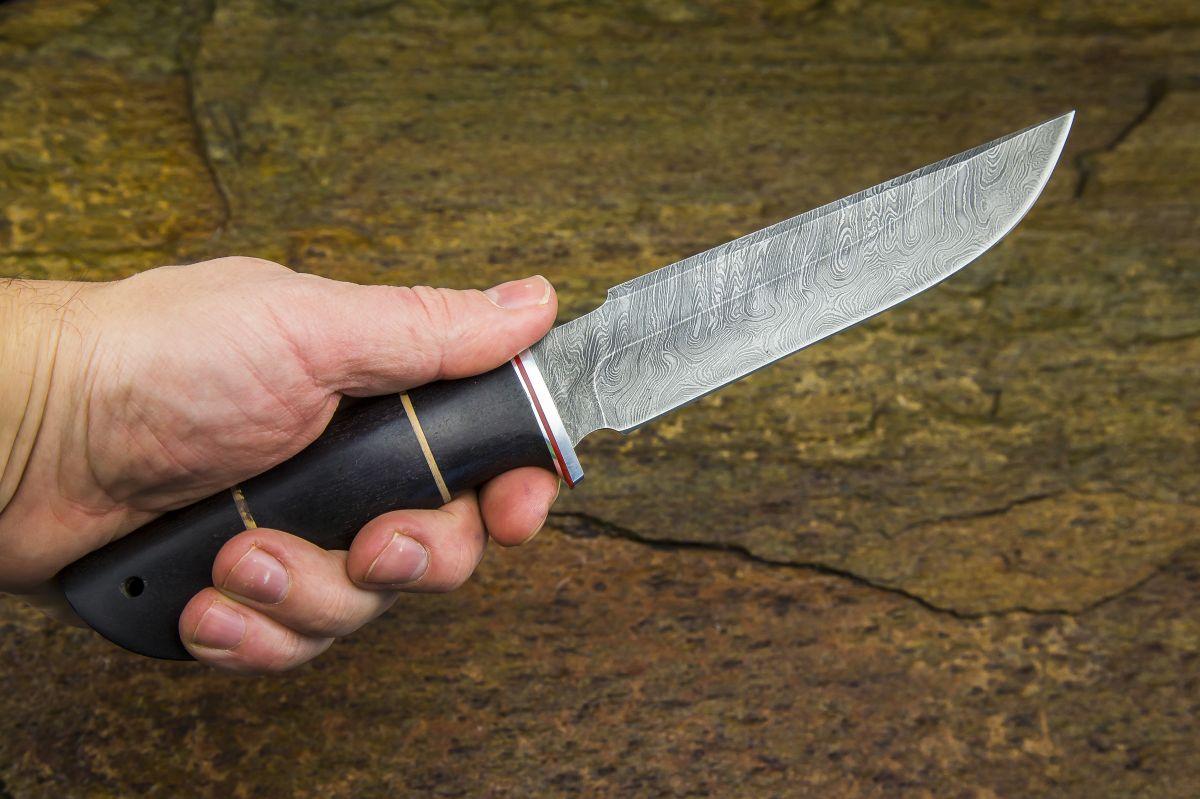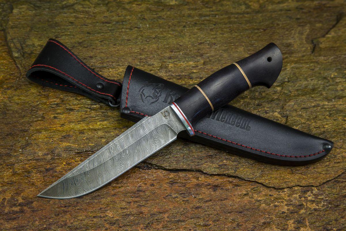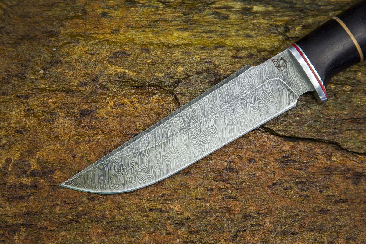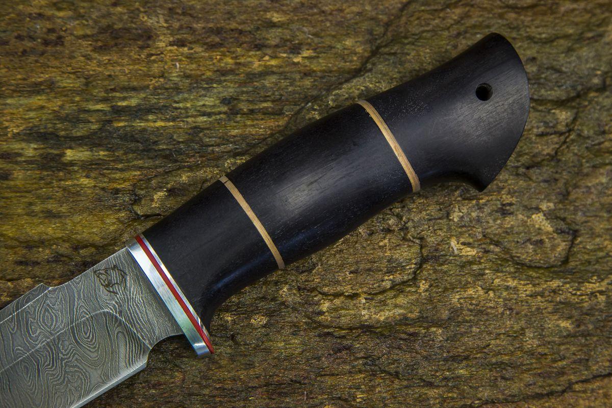 Купить Нож Лиман (дамаск, чёрный граб, вставка береста) в интернет-магазине Три путника.