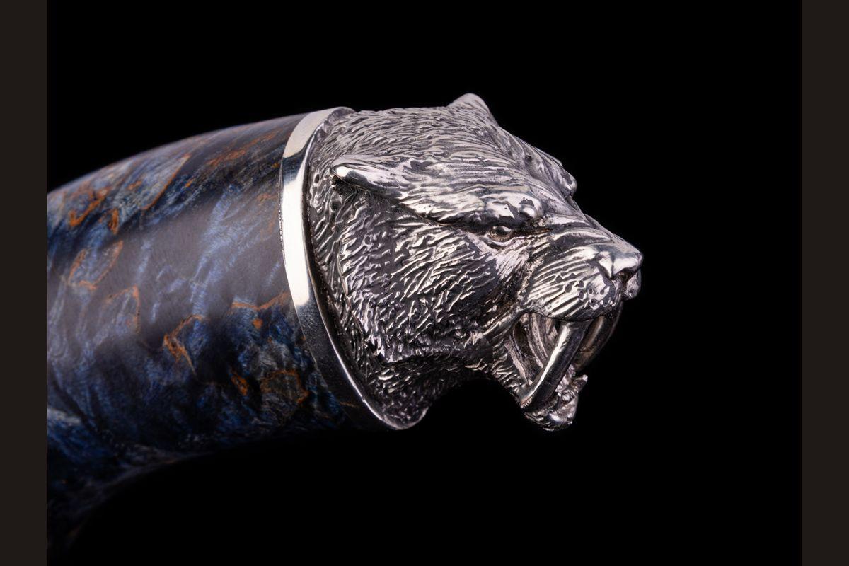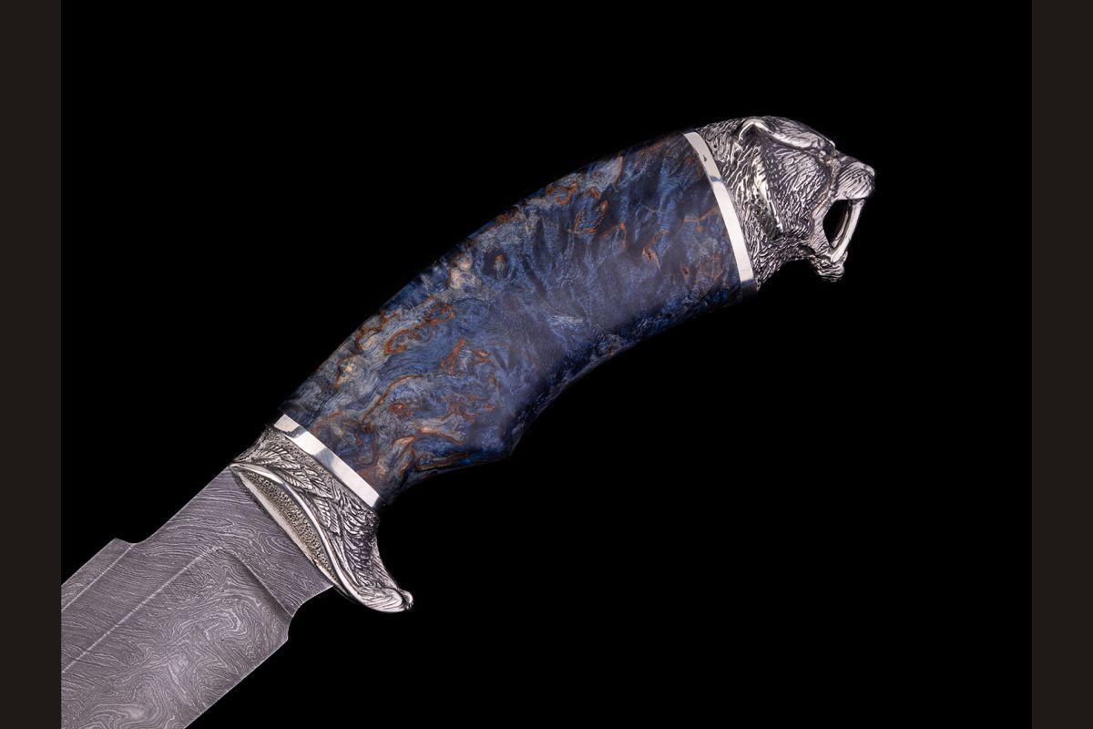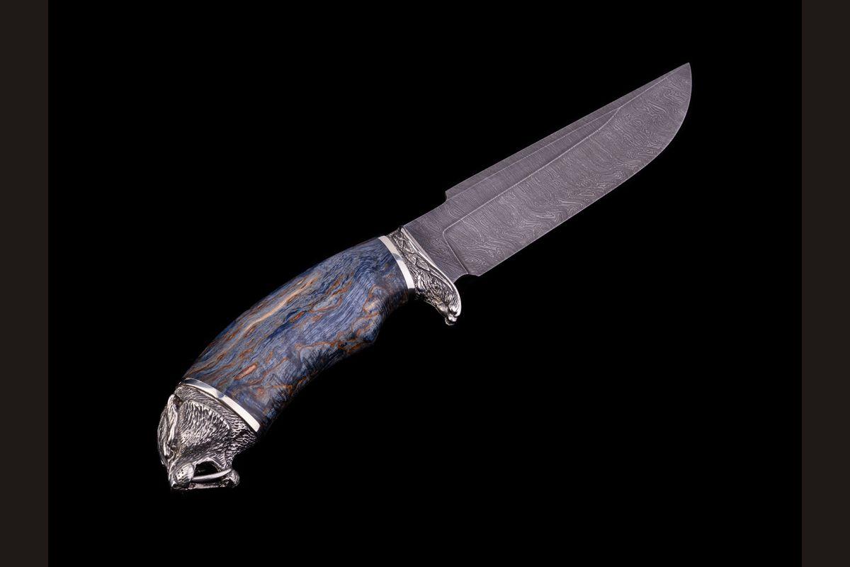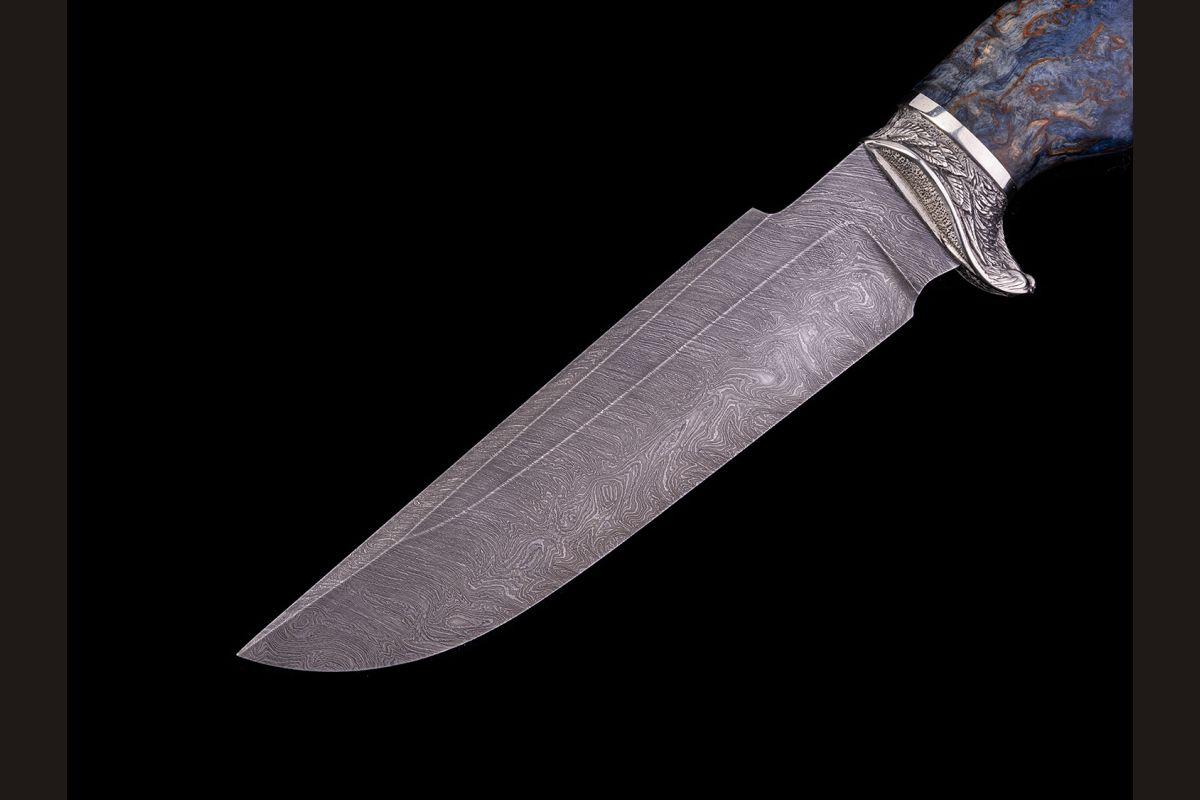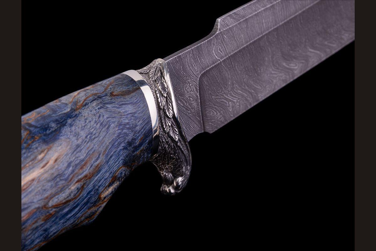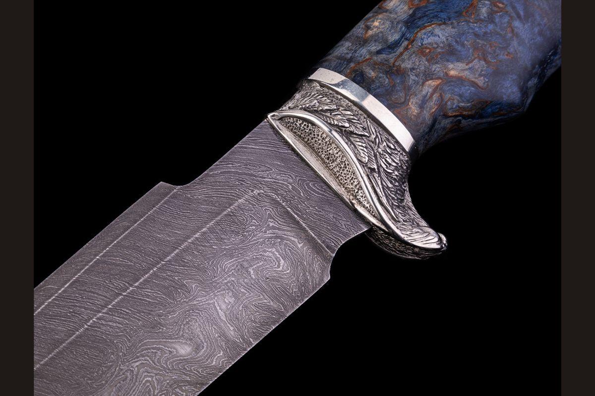 Нож Лиман (дамаск, стабилизированная карельская берёза, литьё мельхиор)