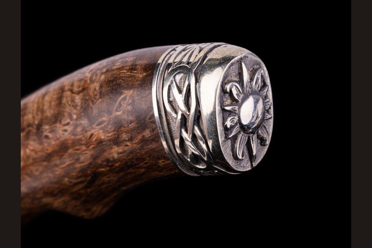 Нож Лиса (дамаск, долы - камень, стабилизированная карельская берёза, литьё мельхиор)