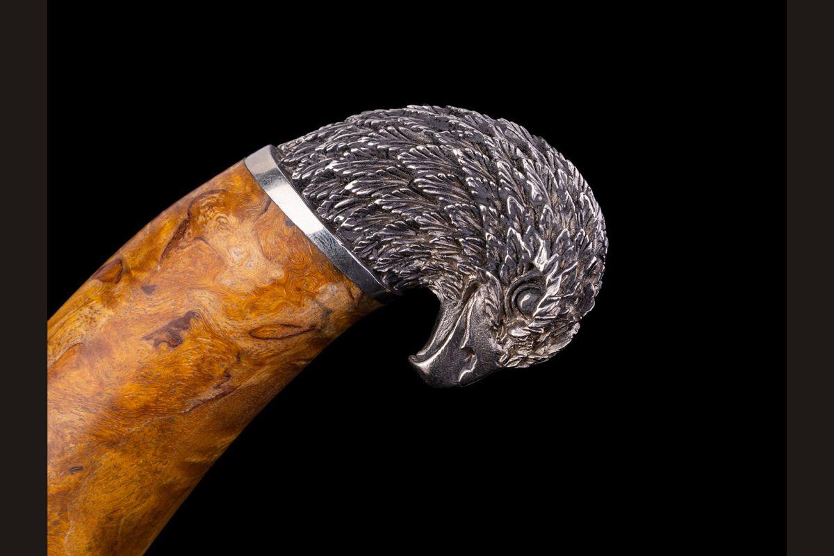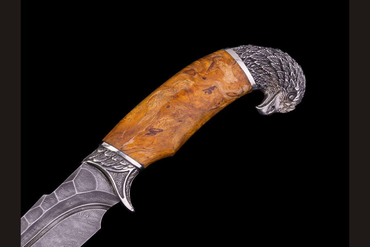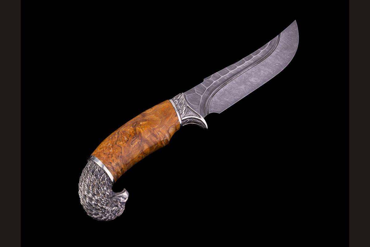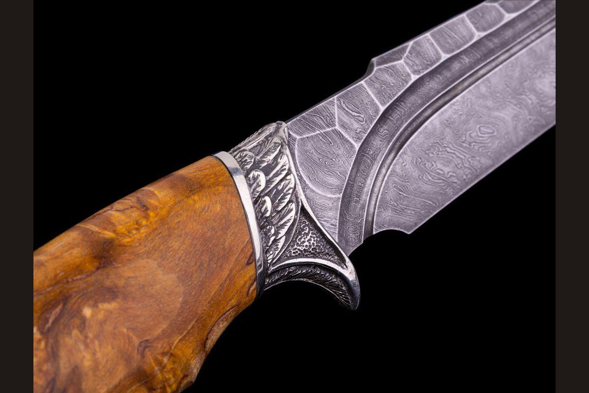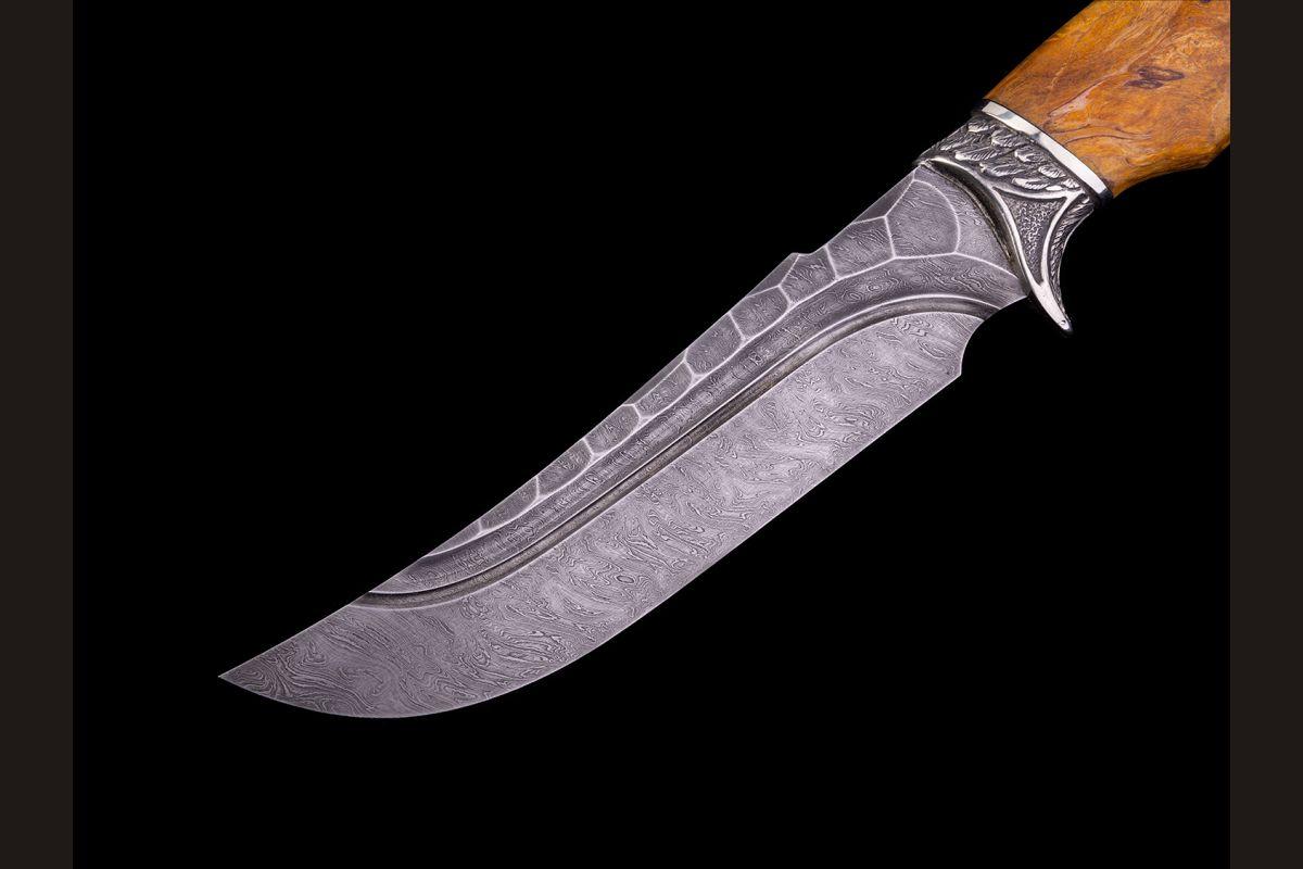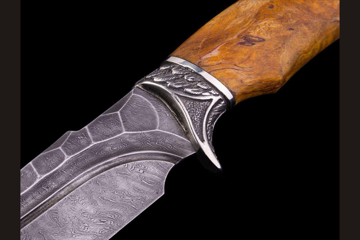 Нож Парнас (дамаск, долы - камень, стабилизированная карельская берёза, литьё мельхиор 1)