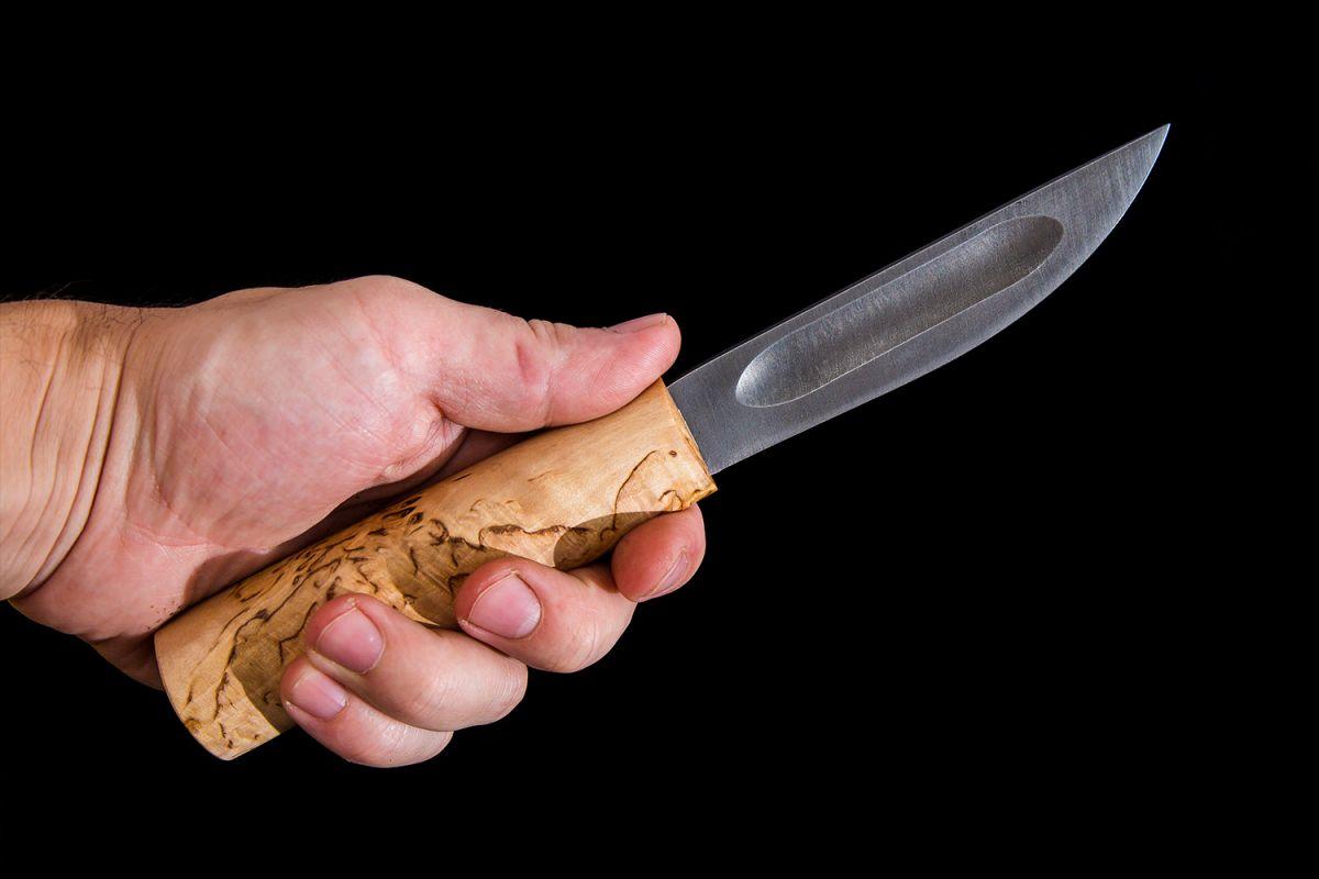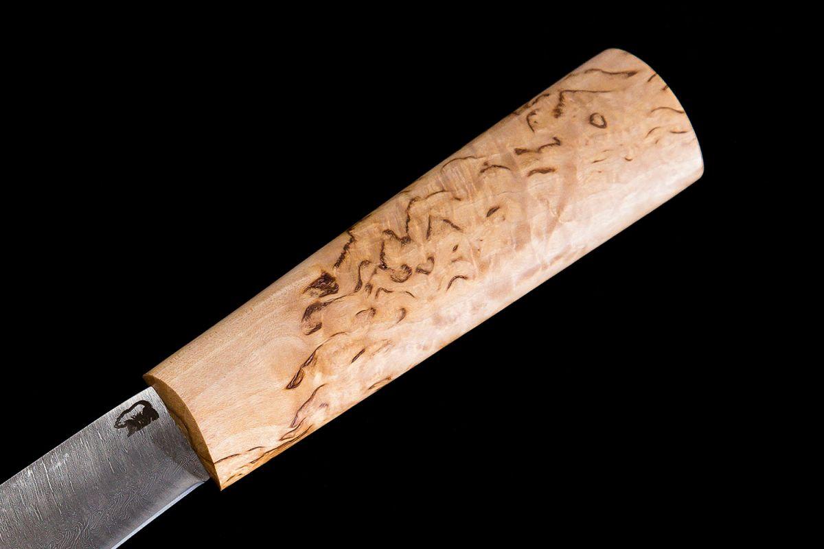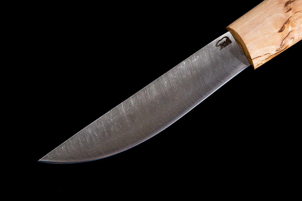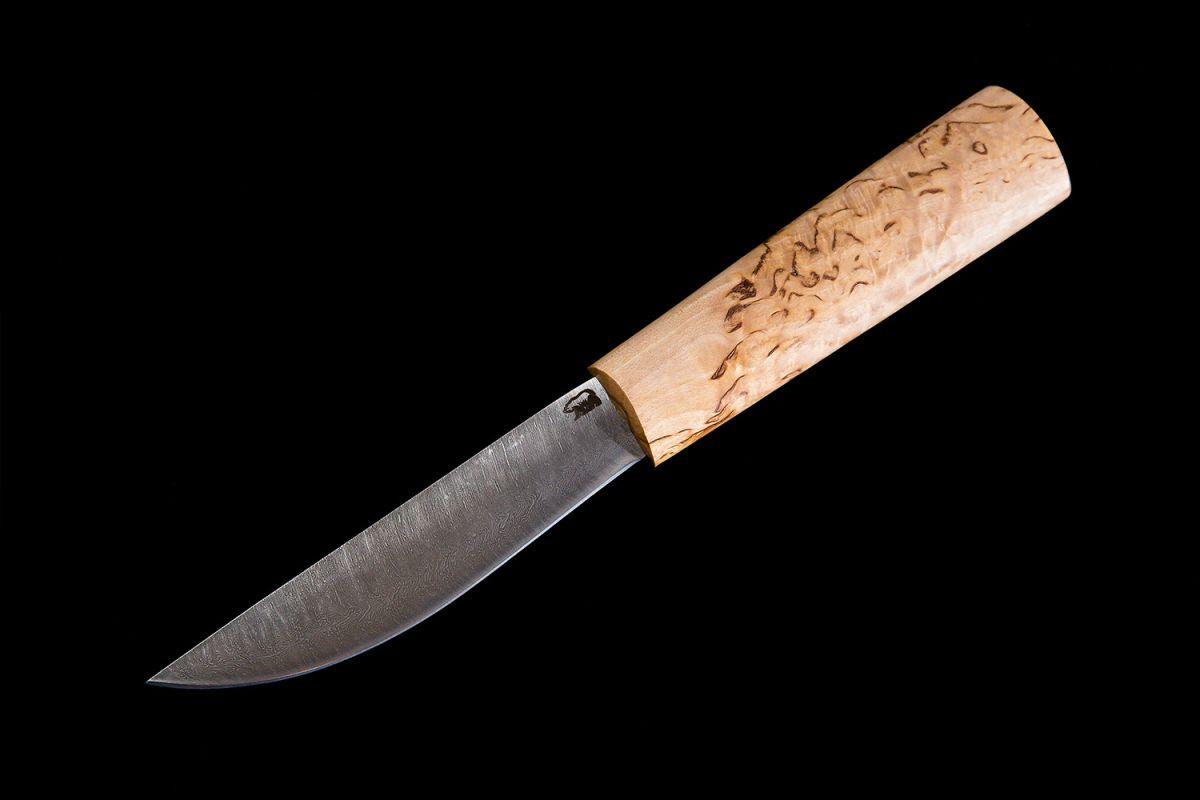 Купить Нож Севера, средний (дамасская сталь 1200 слоёв, рукоять карельская береза) в интернет-магазине Три путника.