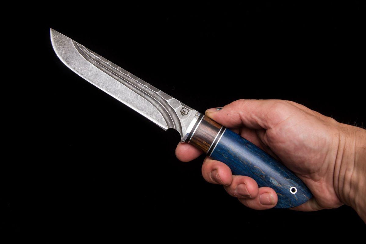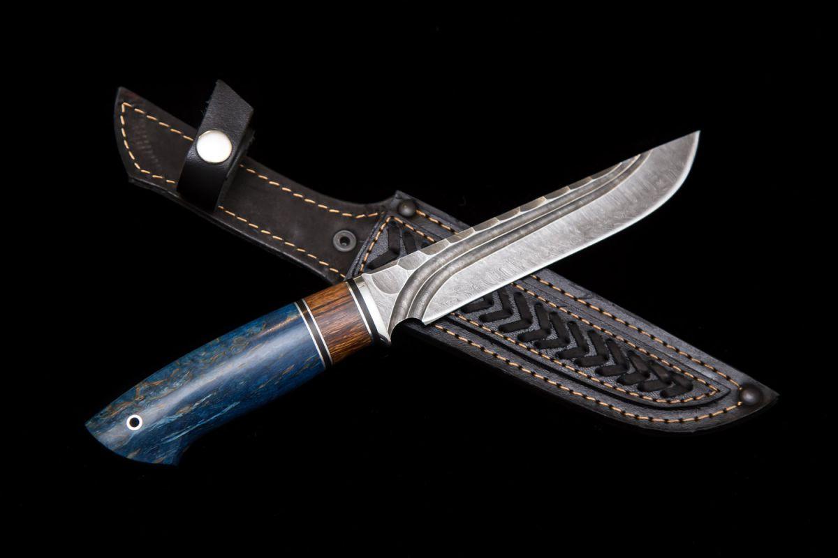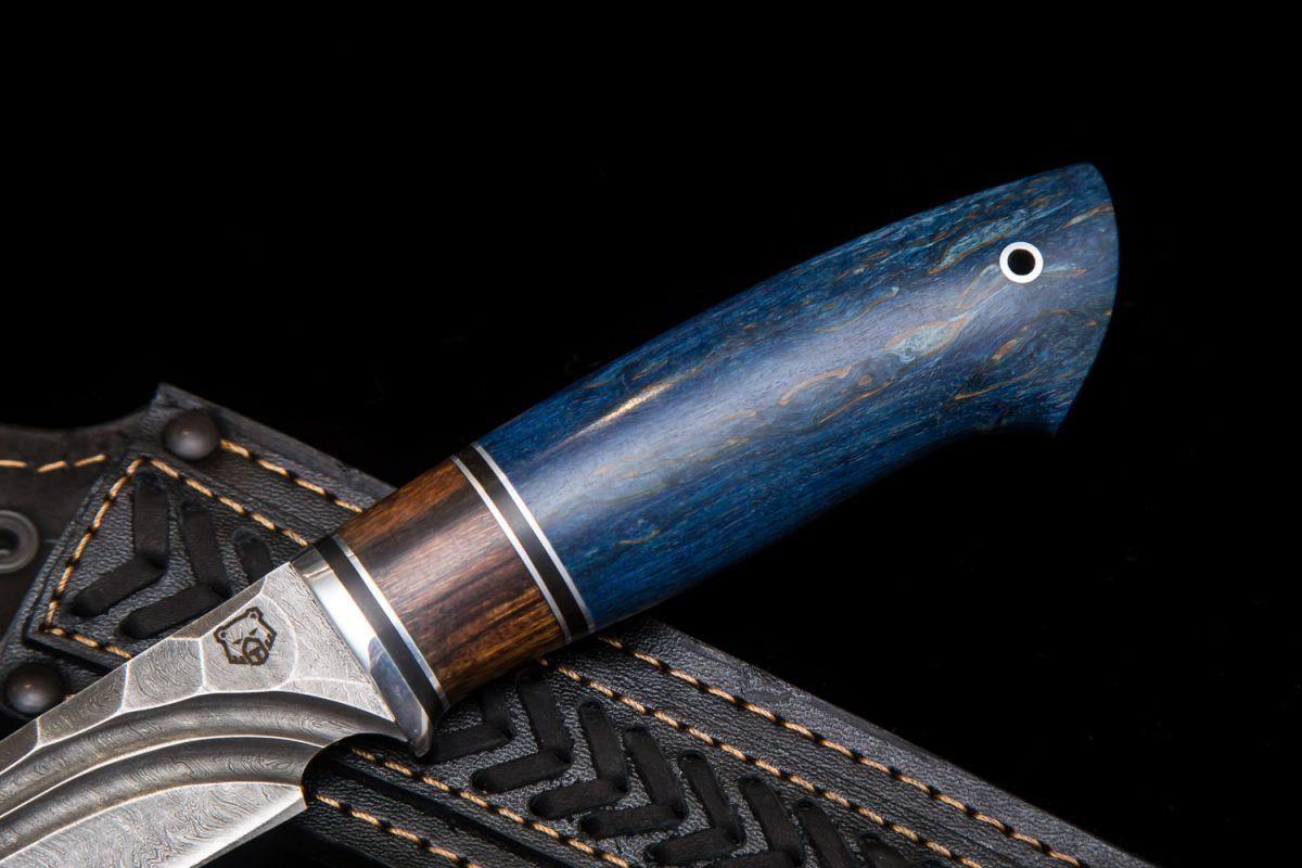 Купить Нож Таёжный (дамаск, долы - камень, вставка айронвуд, стабилизированная карельская берёза) в интернет-магазине Три путника.