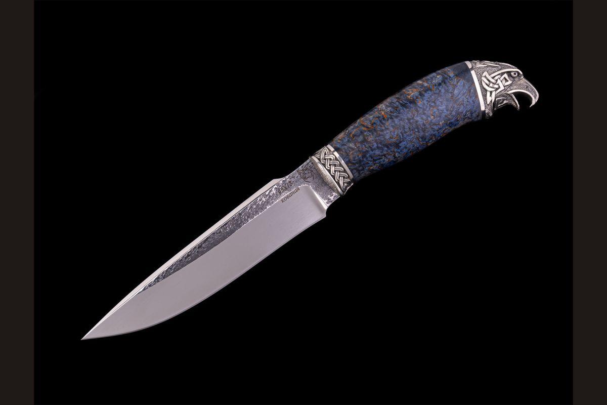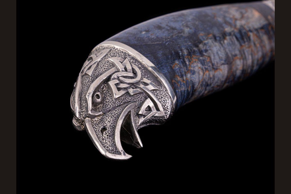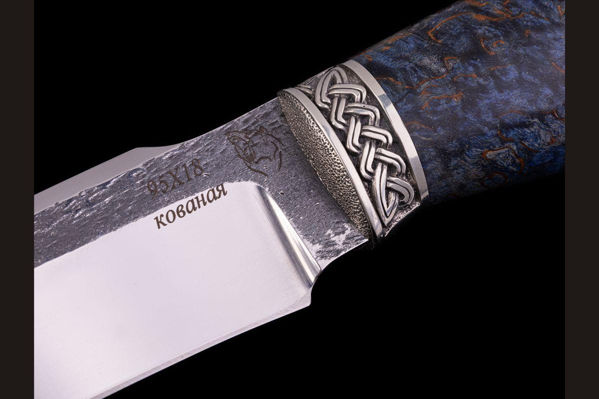 Нож Ворон (95х18, стабилизированная карельская берёза, литьё мельхиор 2)