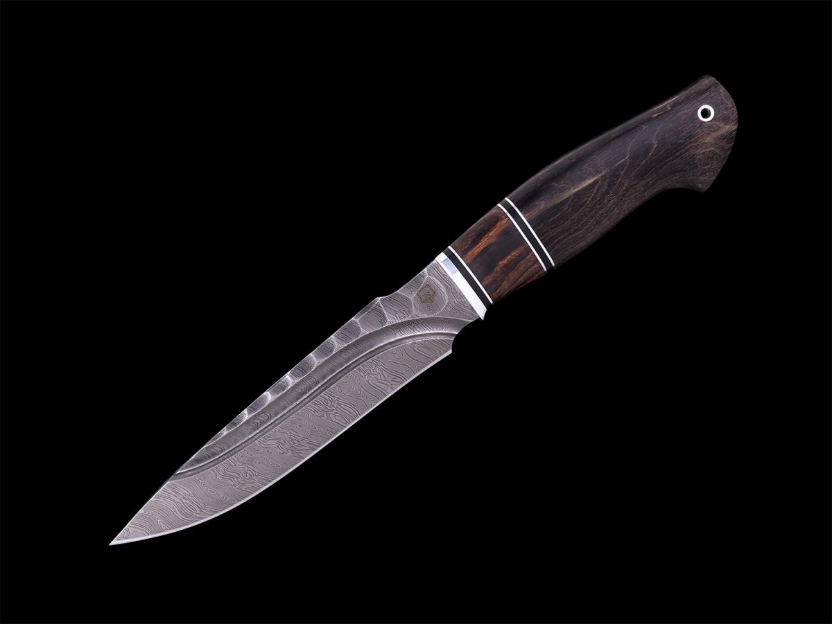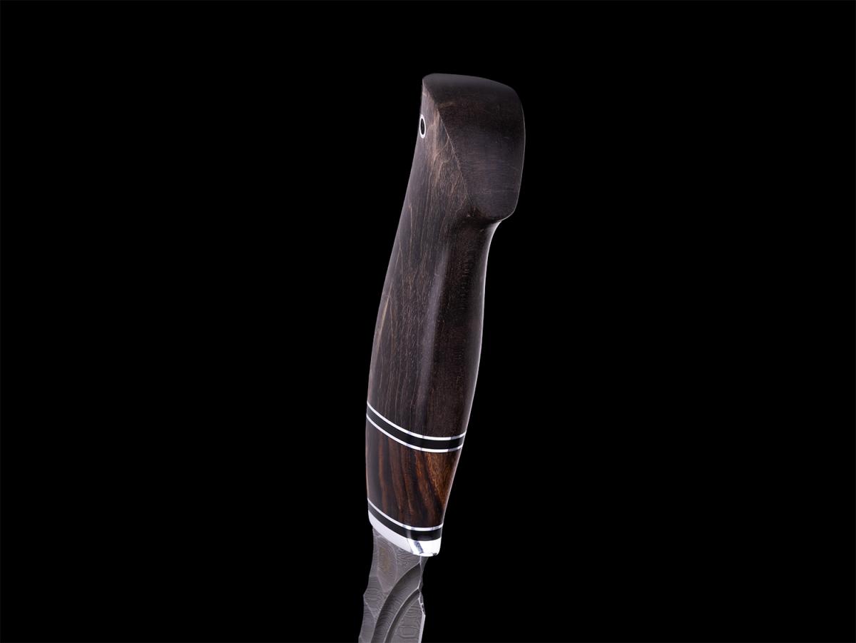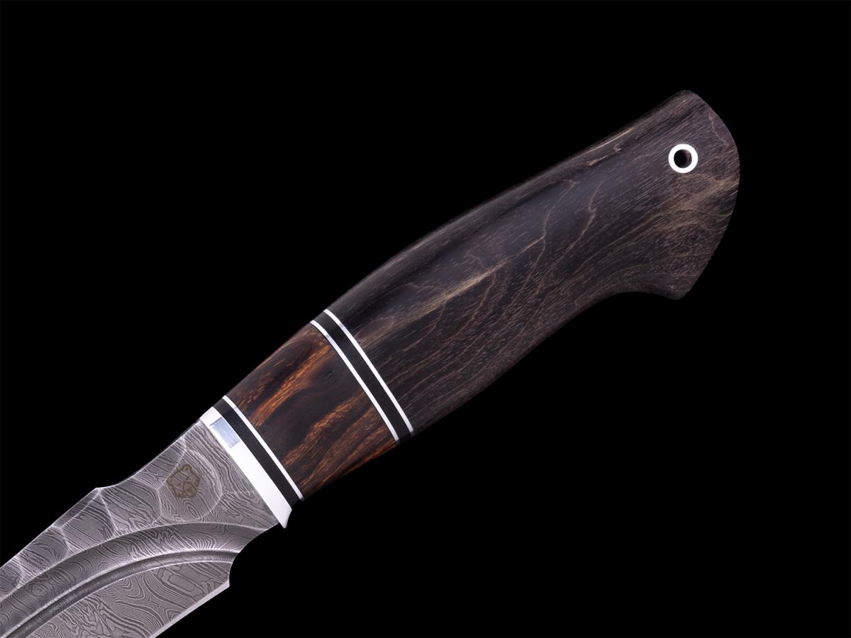 Нож Ворон (Дамасская сталь, вставка айронвуд, стабилизированная карельская берёза)