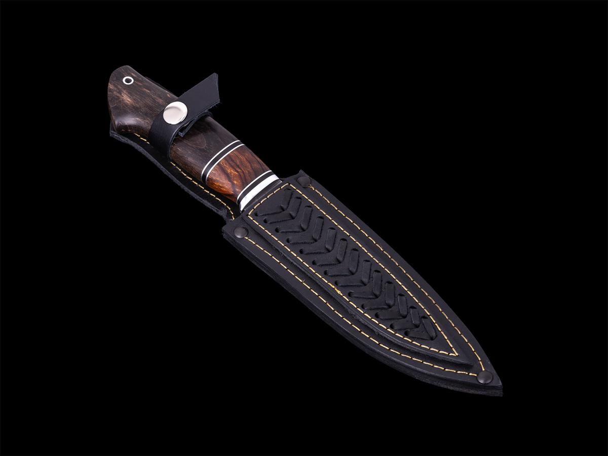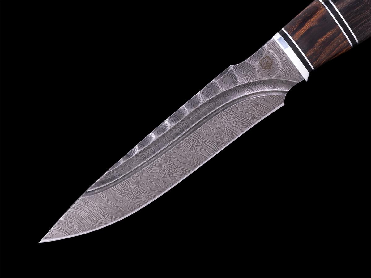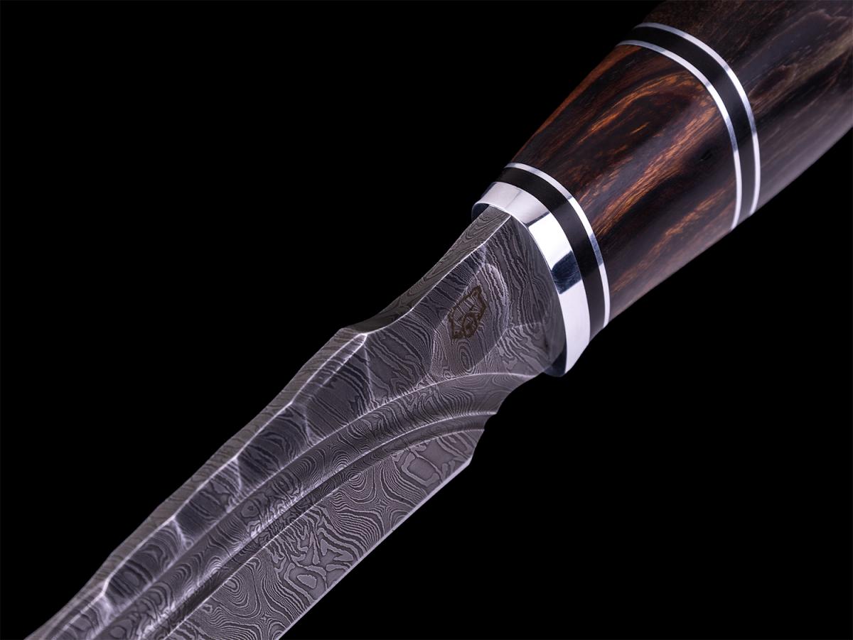 Нож Ворон (Дамасская сталь, вставка айронвуд, стабилизированная карельская берёза)