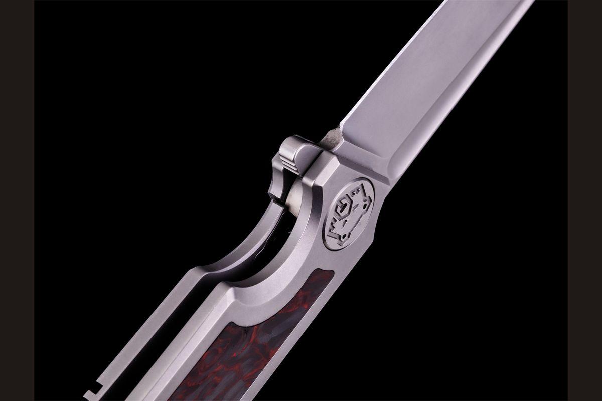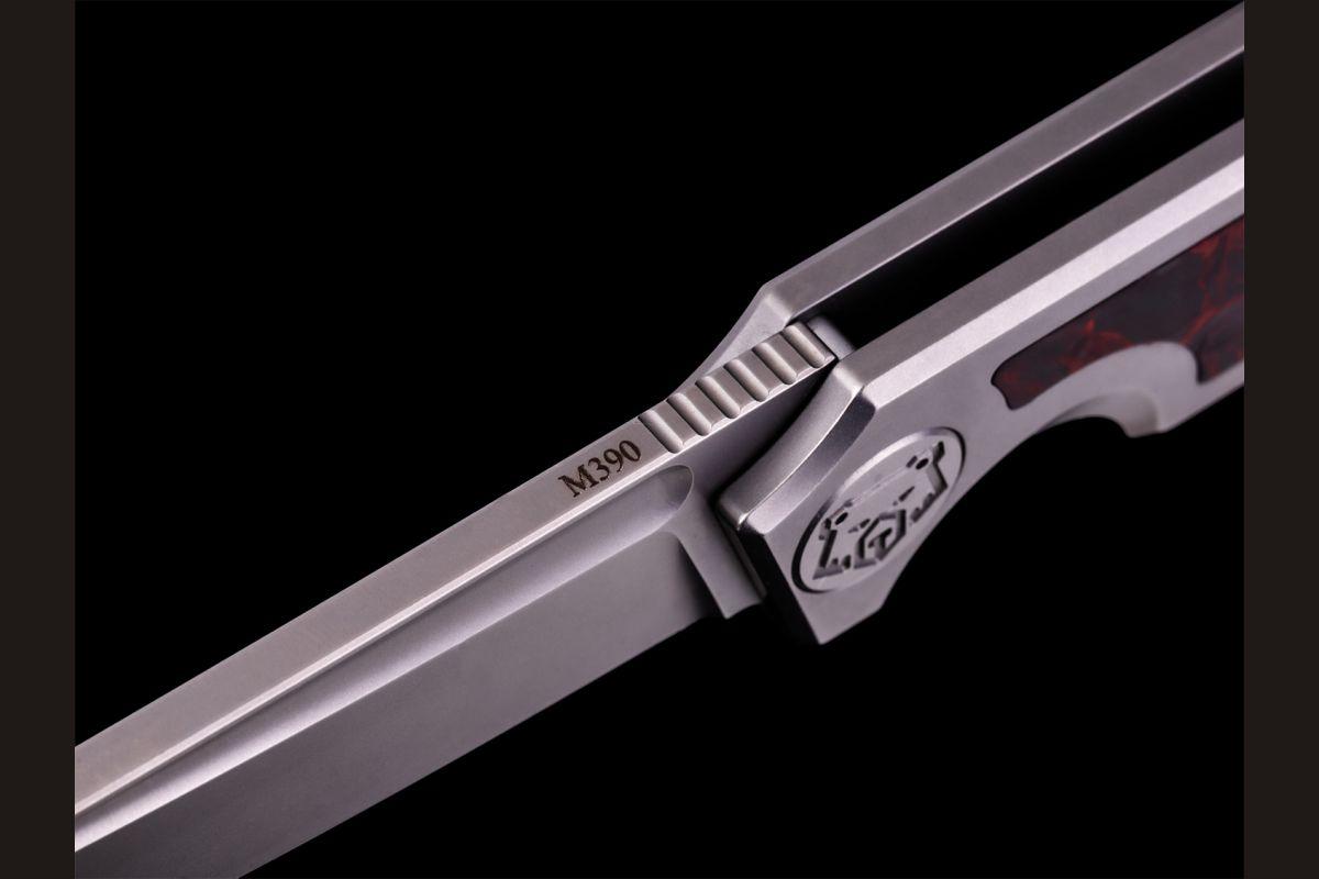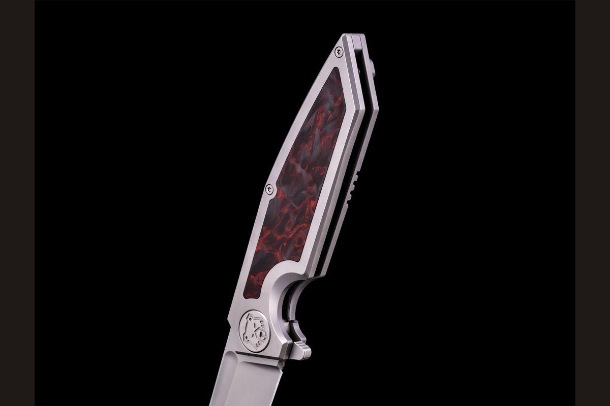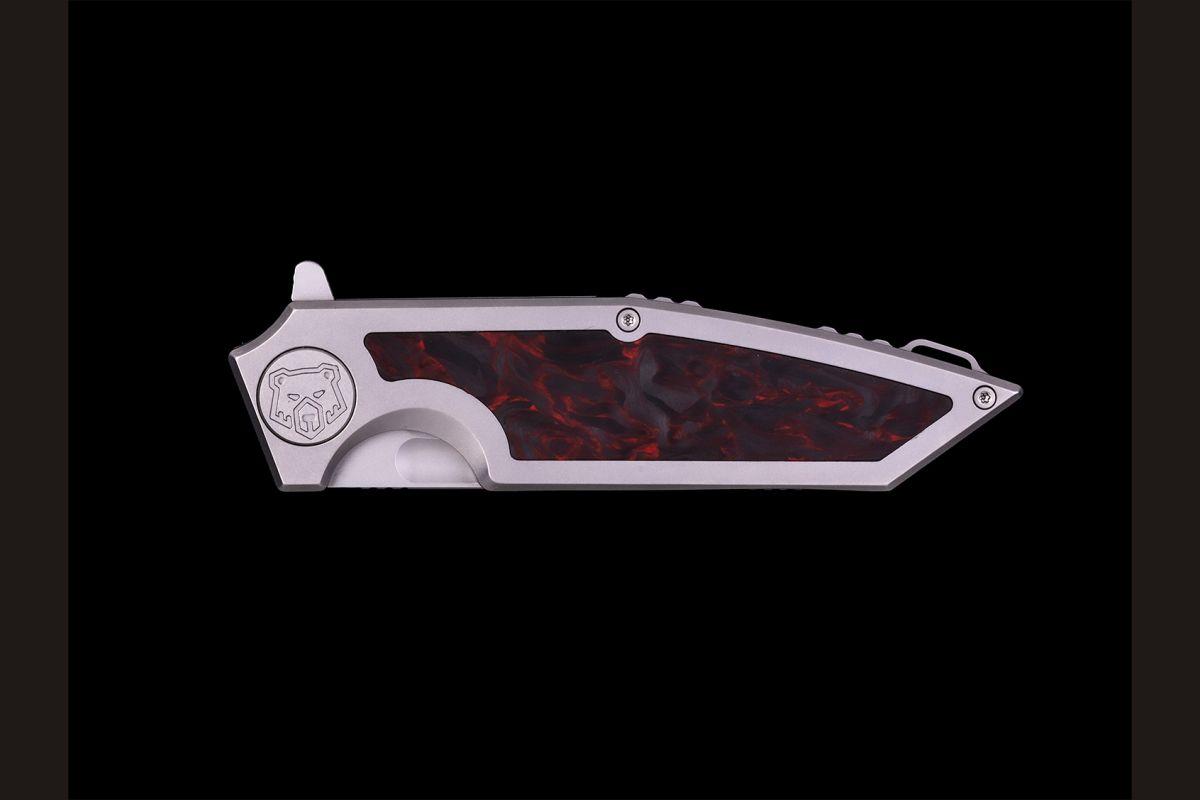 Складной нож Баланс (М390, Титан, вставка красный хаотичный карбон)
