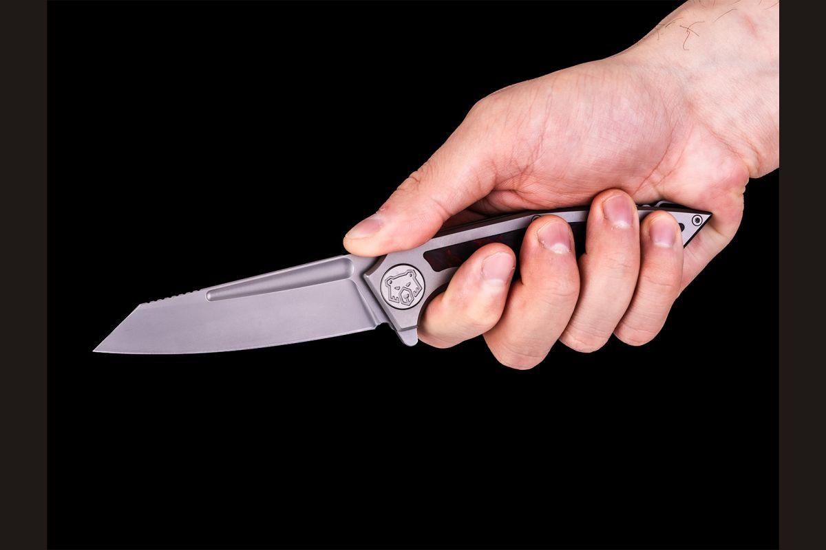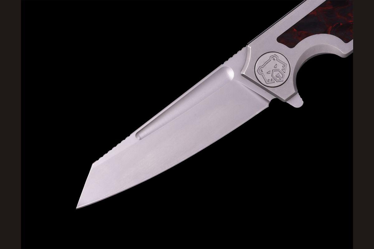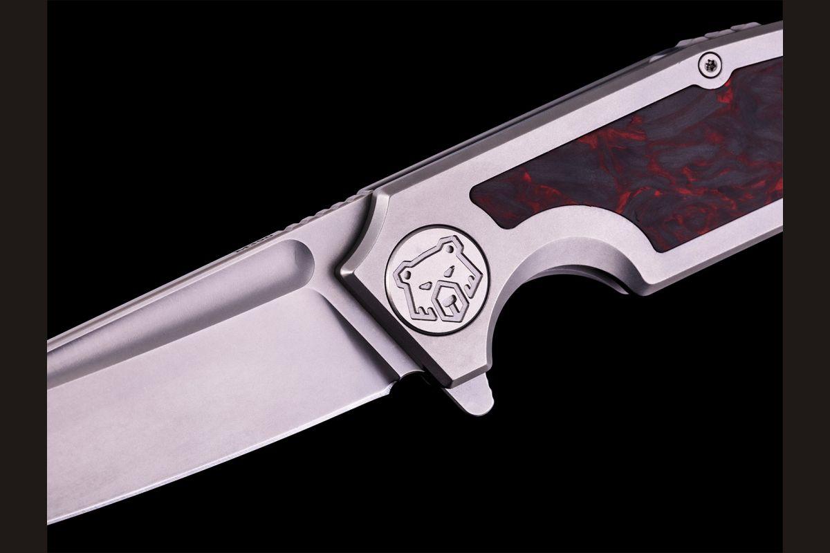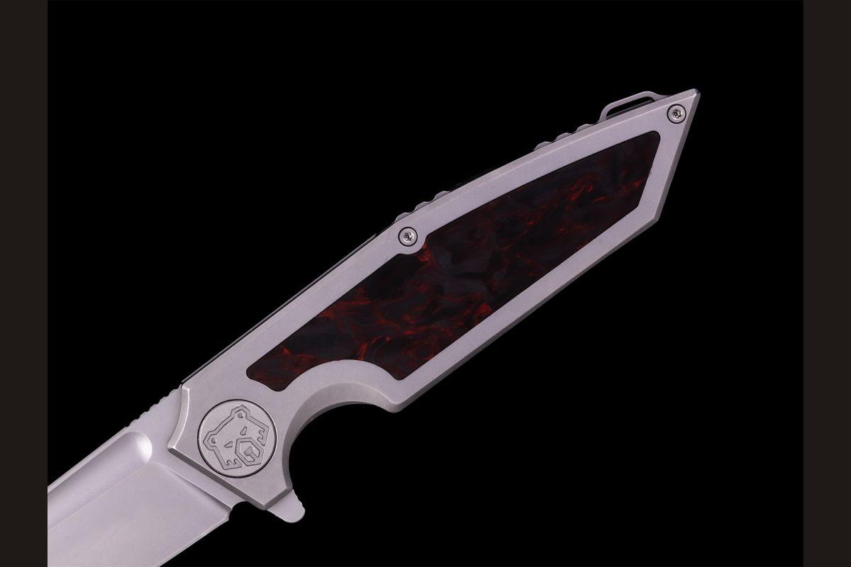 Складной нож Баланс (М390, Титан, вставка красный хаотичный карбон)