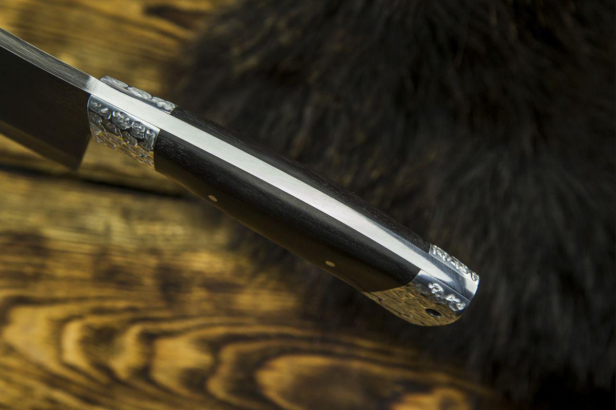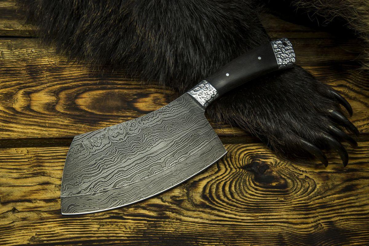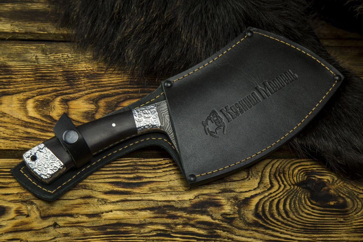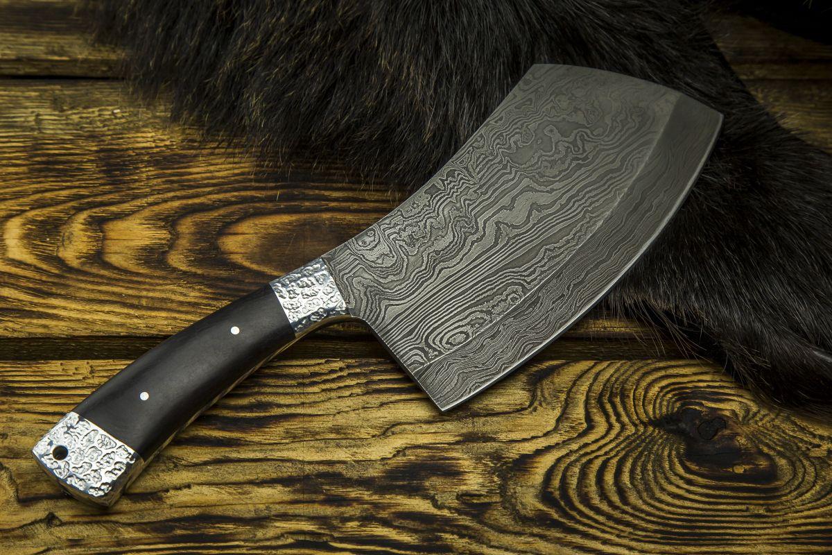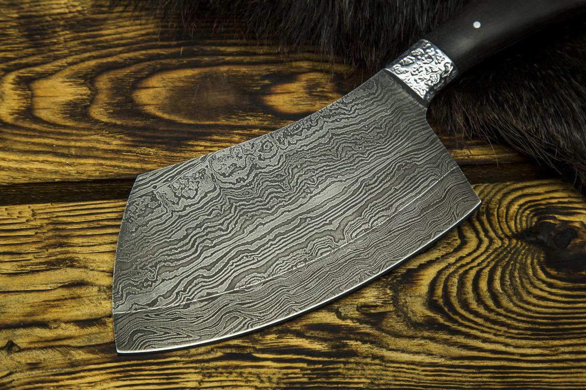 Тяпка № 1 (дамасская сталь 1200 слоёв, чёрный граб, цельнометаллическая, резная рукоять)