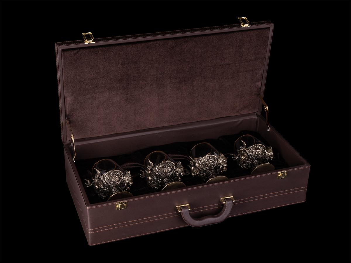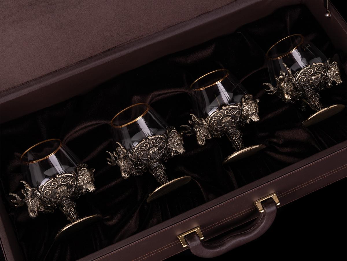 Бокалы для коньяка Трофейная охота 4 шт в шкатулке