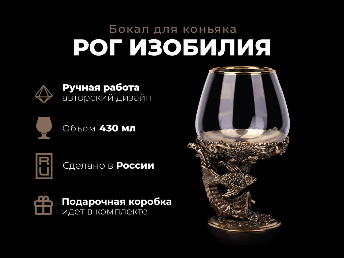 Бокал коньяка Рог изобилия идеально подходит для подарка успешным людям или для тех, кто только начинает свою карьеру.