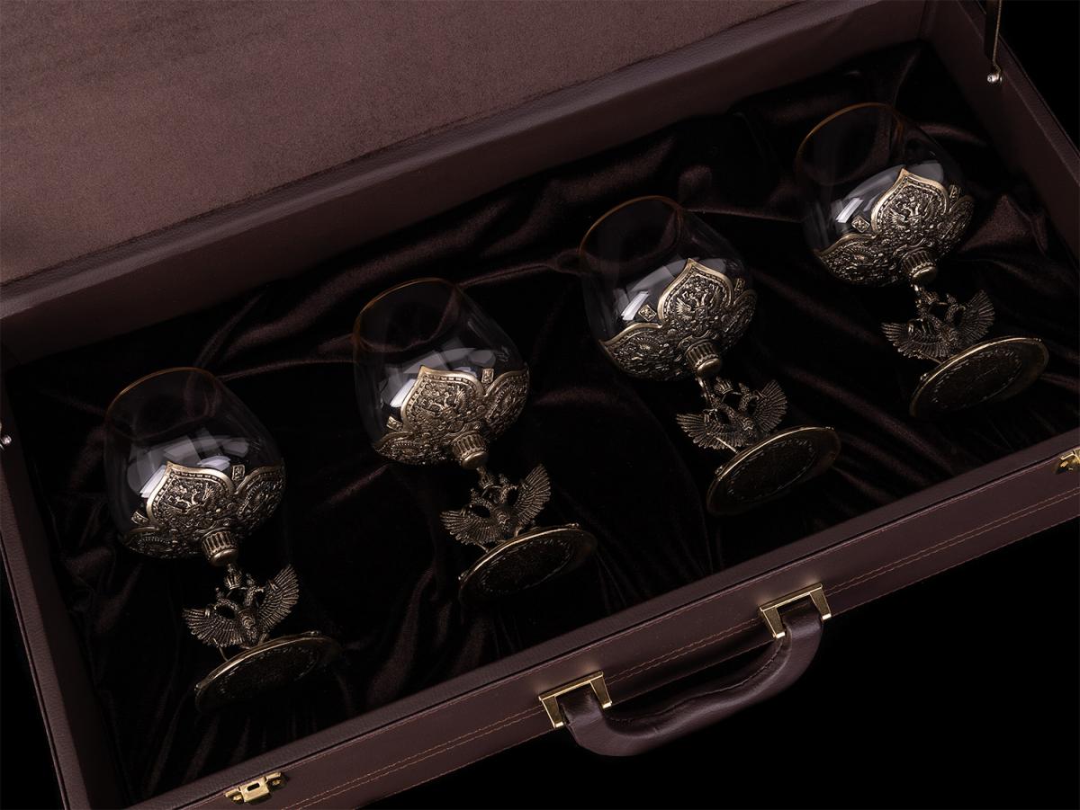 Бокалы для коньяка Герб 4 шт в шкатулке