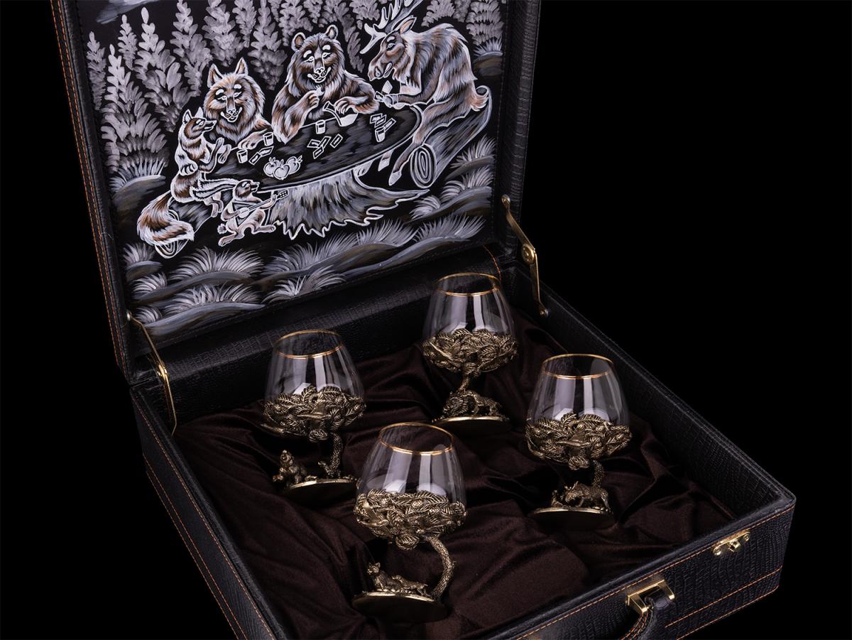 Набор бокалов для коньяка Хвойный лес 4 шт в подарочном кейсе