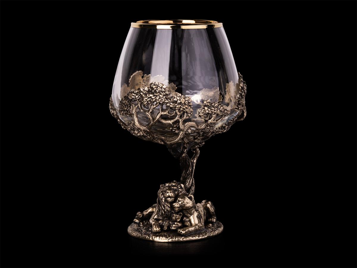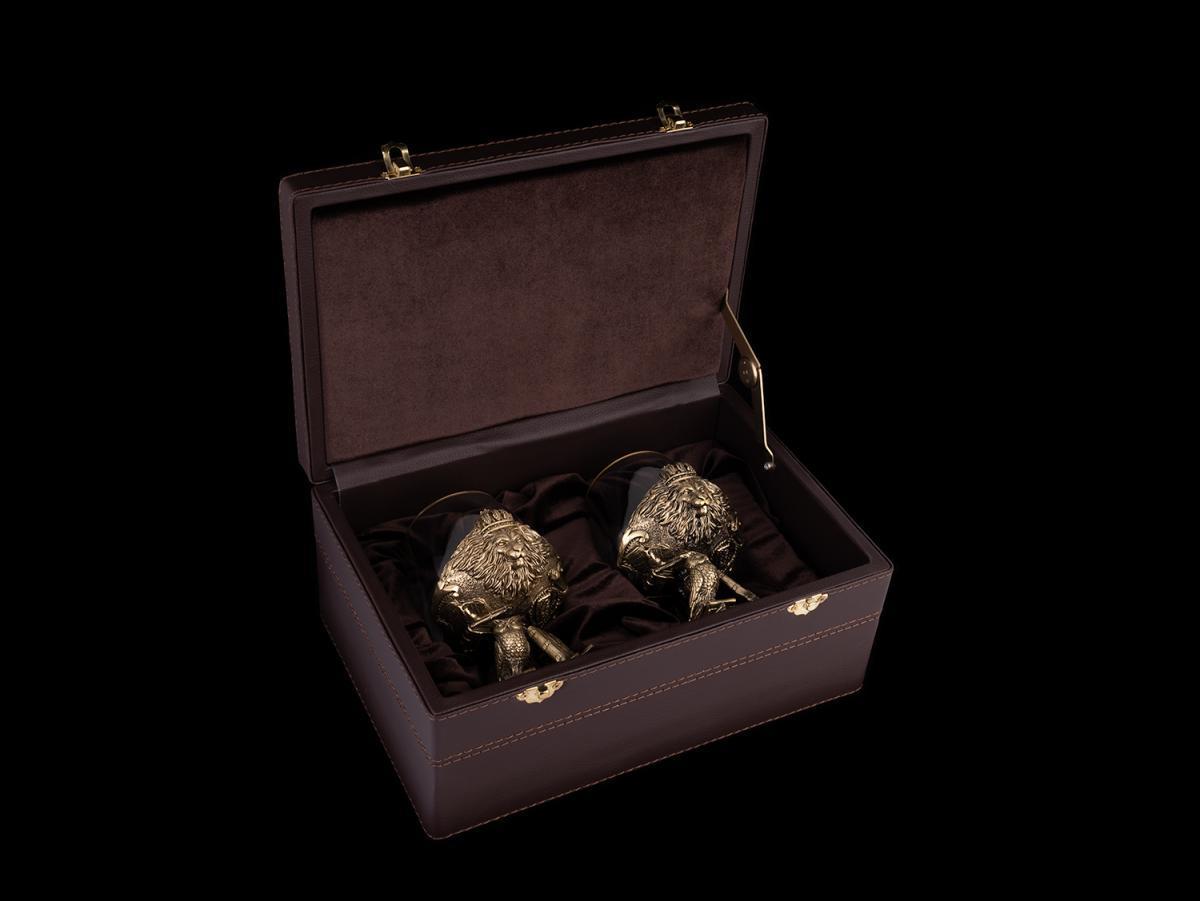 Пара бокалов для коньяка Лев и Львица (Латунь, стекло)