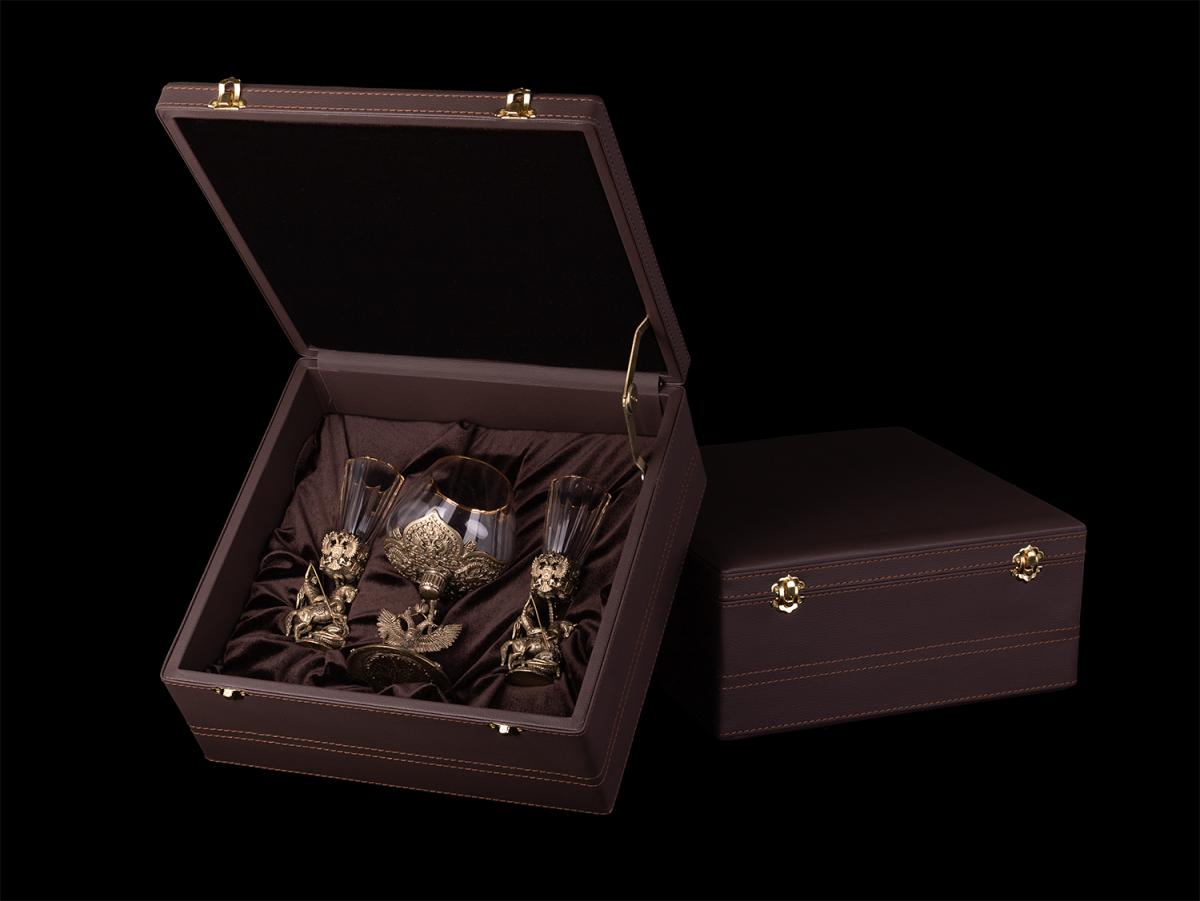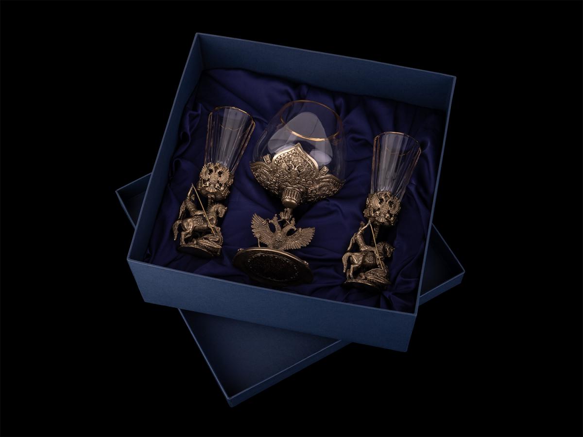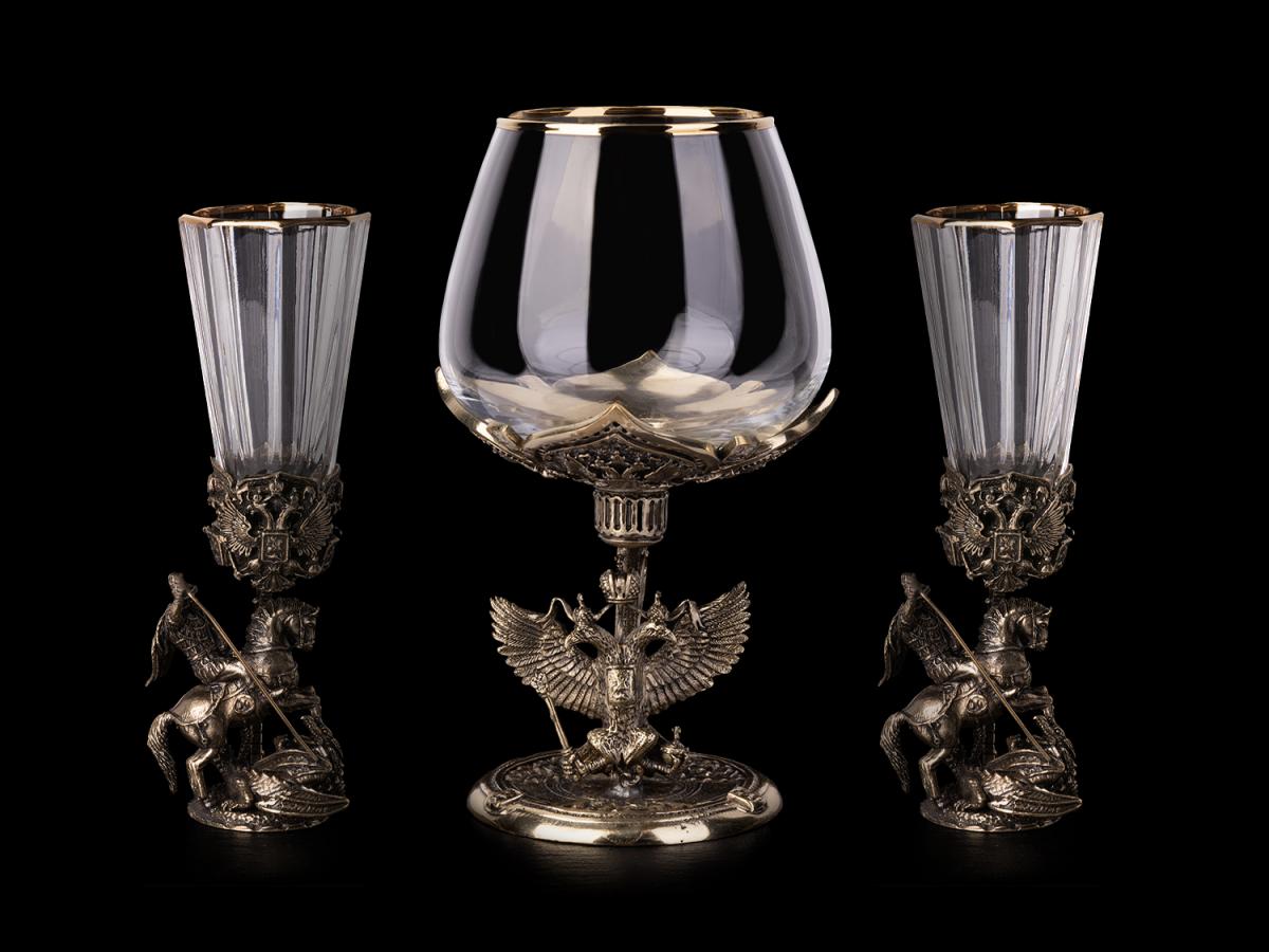 Подарочный набор Герб и Георгий Победоносец №2 (2 лафитника, бокал для коньяка)