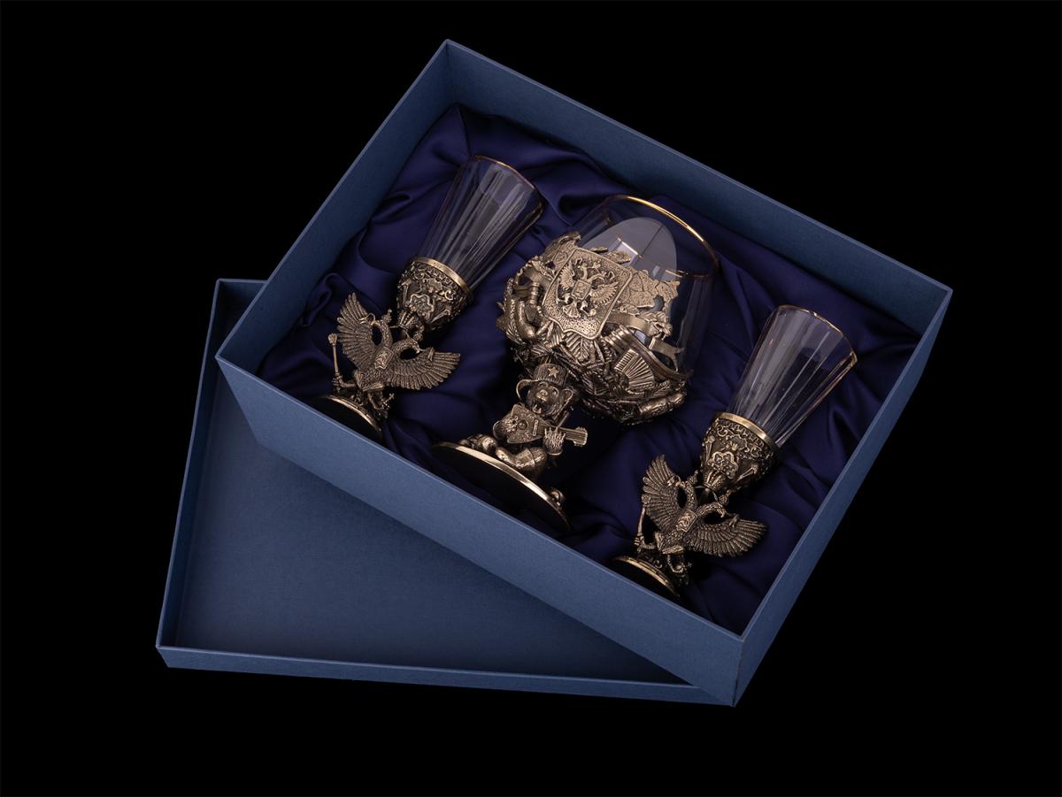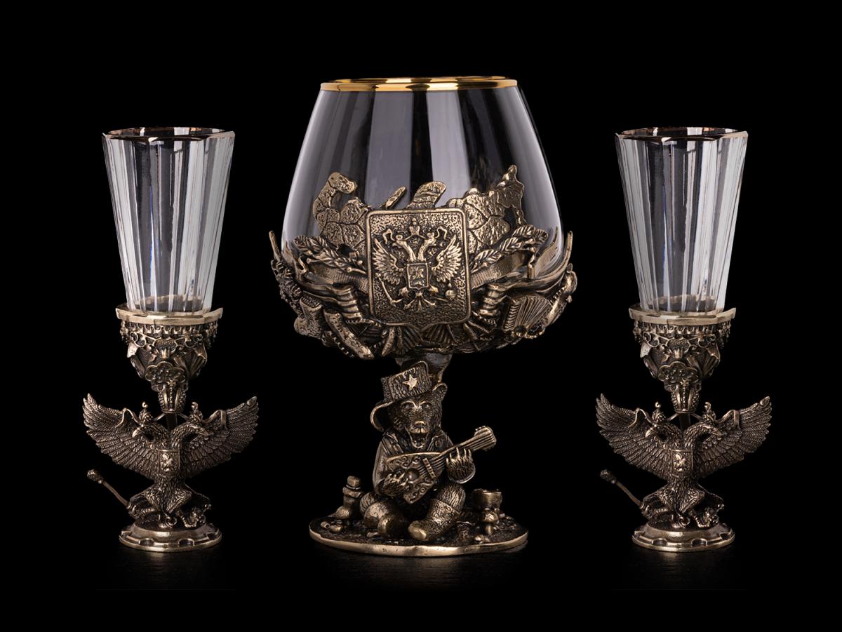 Подарочный набор Народный (2 лафитника, бокал для коньяка)