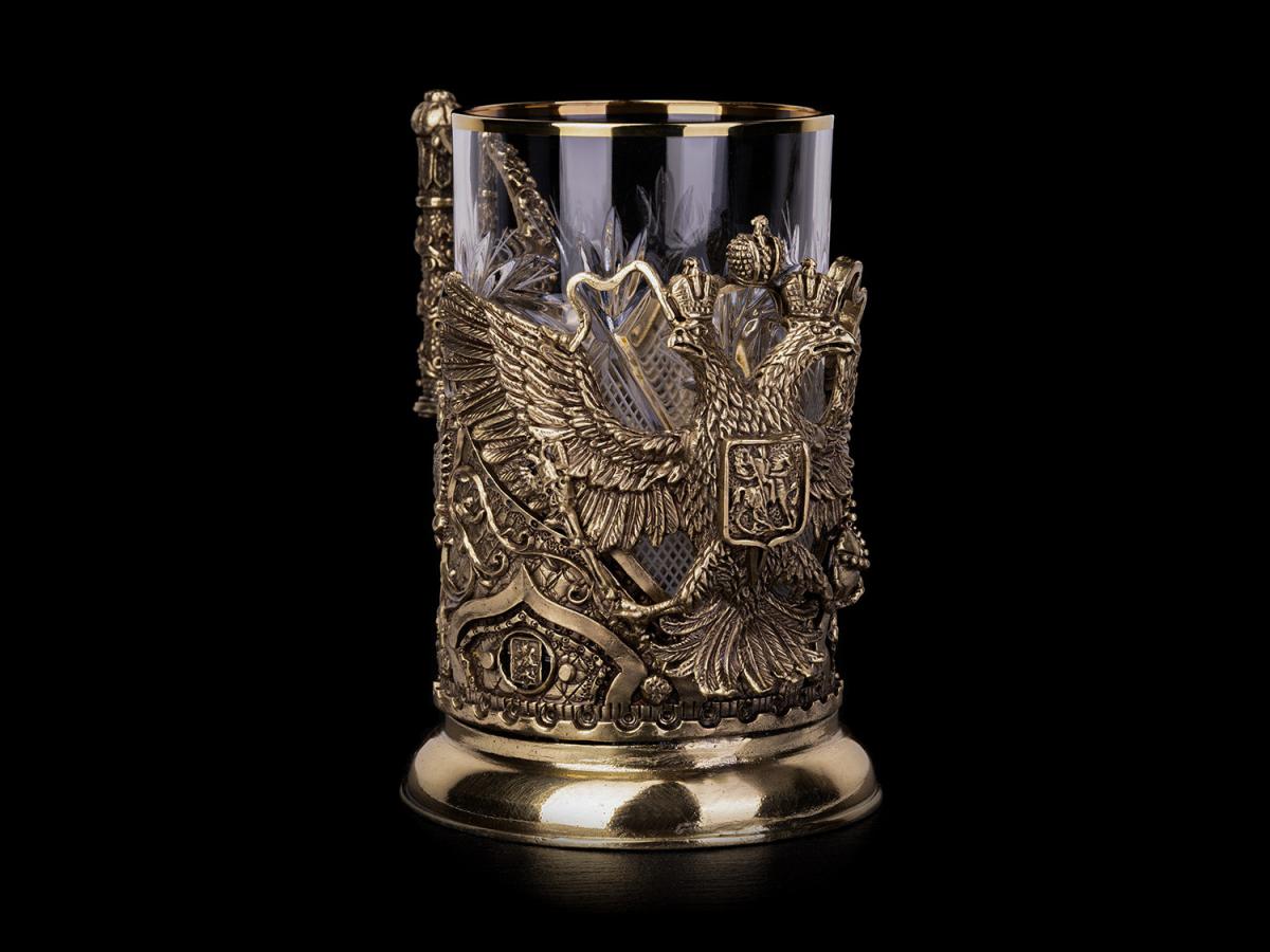 Подстаканник Герб России (Латунь, хрусталь)