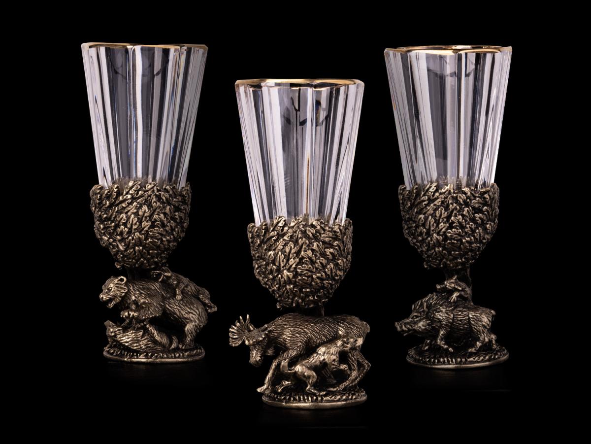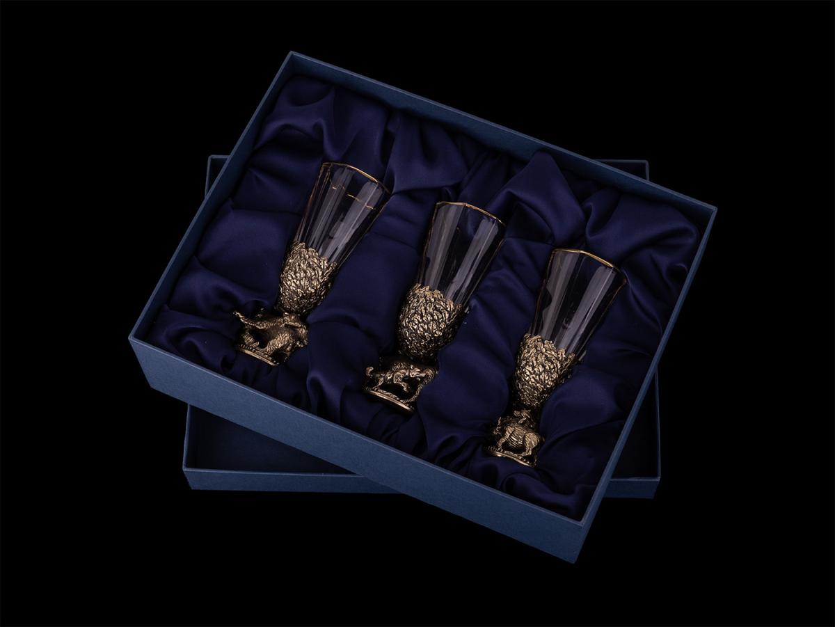 Лафитники Русский лес 3 или 6 шт (латунь, хрусталь)