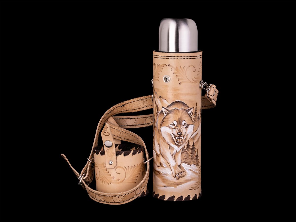 Термос Волк №4 (бежевый)